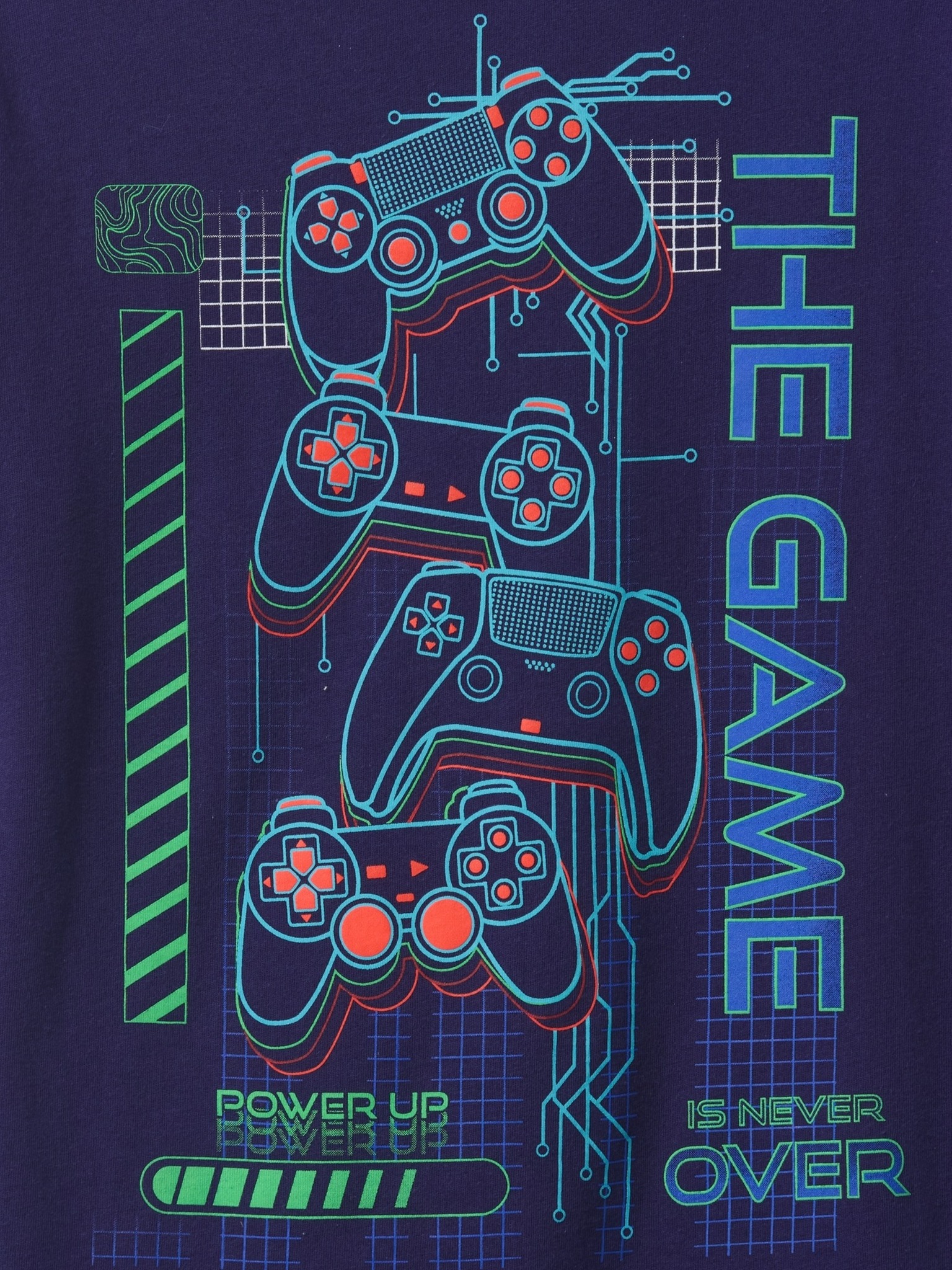 • Az elejét különböző grafikai minták díszítik, amelyek játékos megjelenést kölcsönöznek a pólónak.