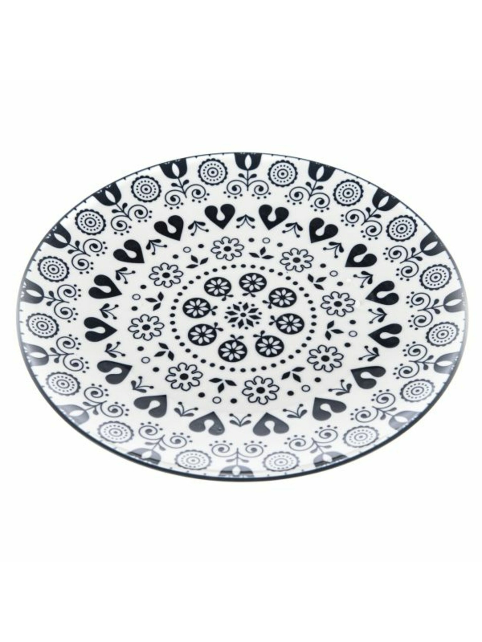 Kerámia tányér, fehér fekete pöttyökkel, 12/24