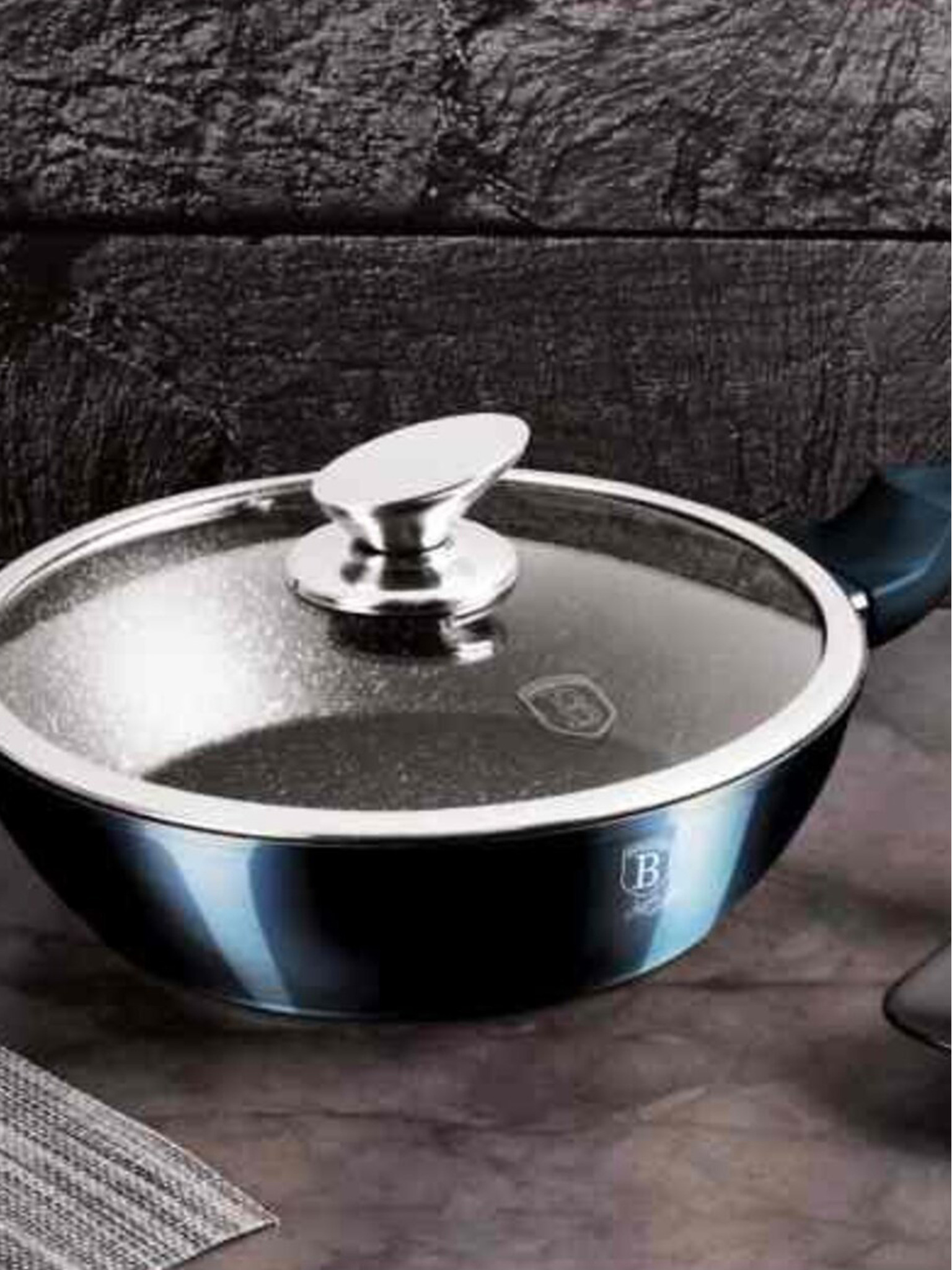 28 cm-es grillserpenyő fedővel Shiny Black Collection BERLINGERHAUS