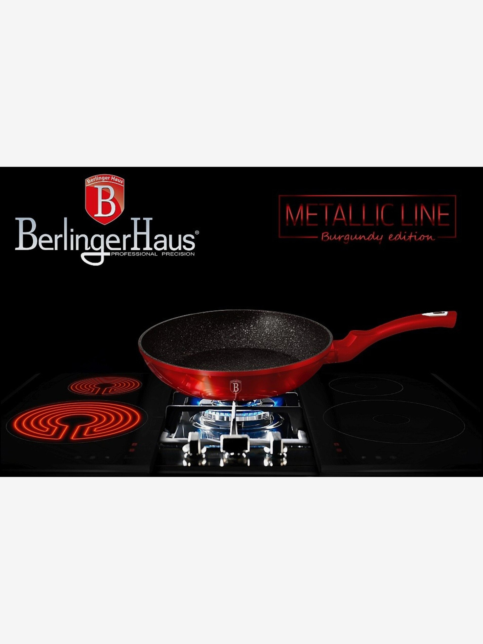 5 db-os serpenyőszett levehető nyéllel Burgundy Metallic Line grill BERLINGERHAUS