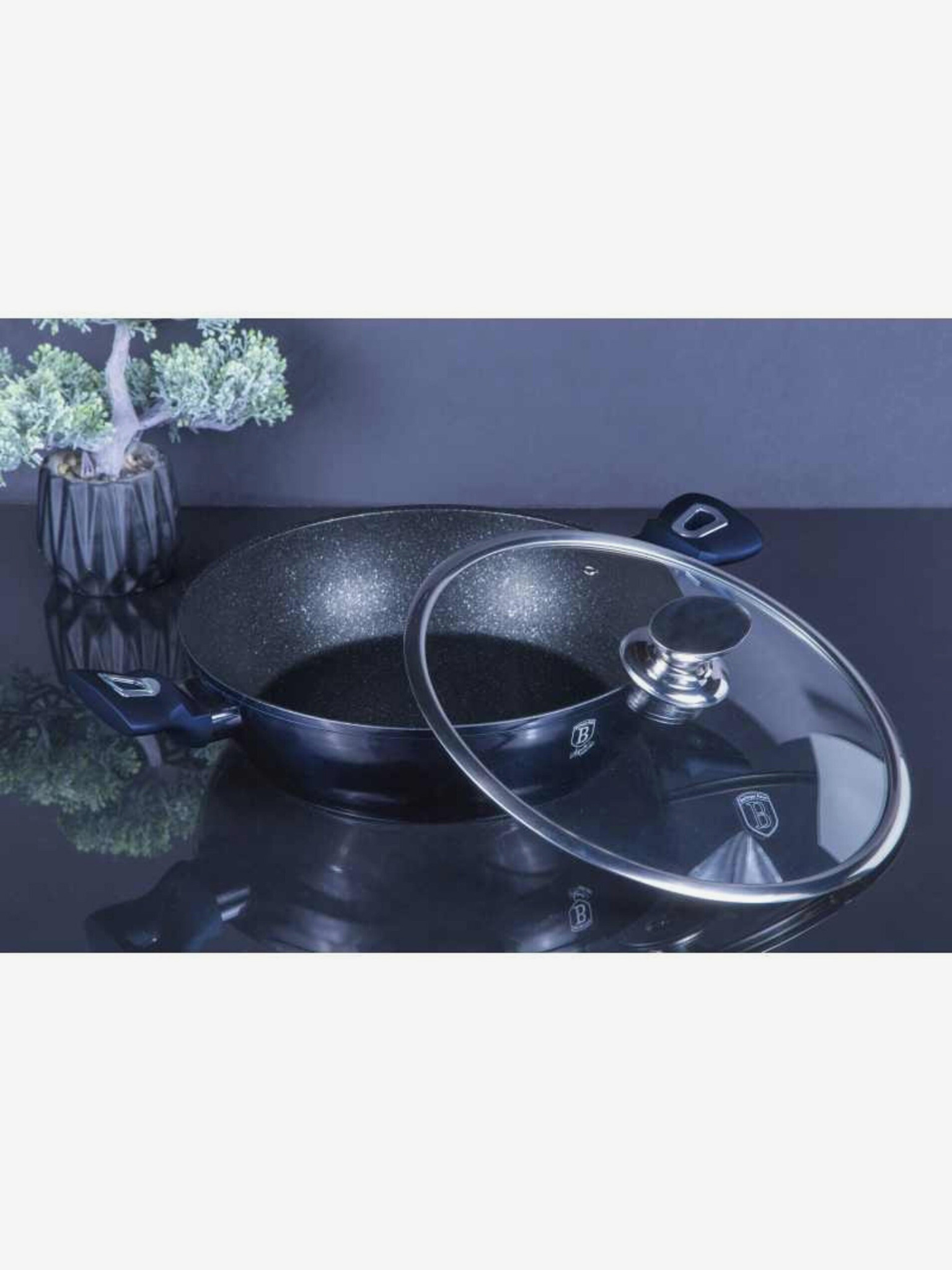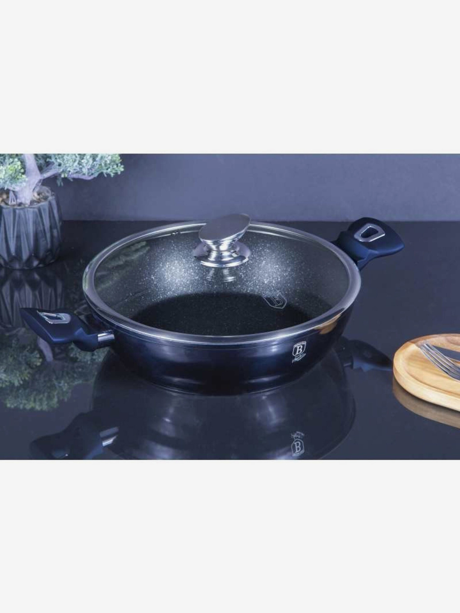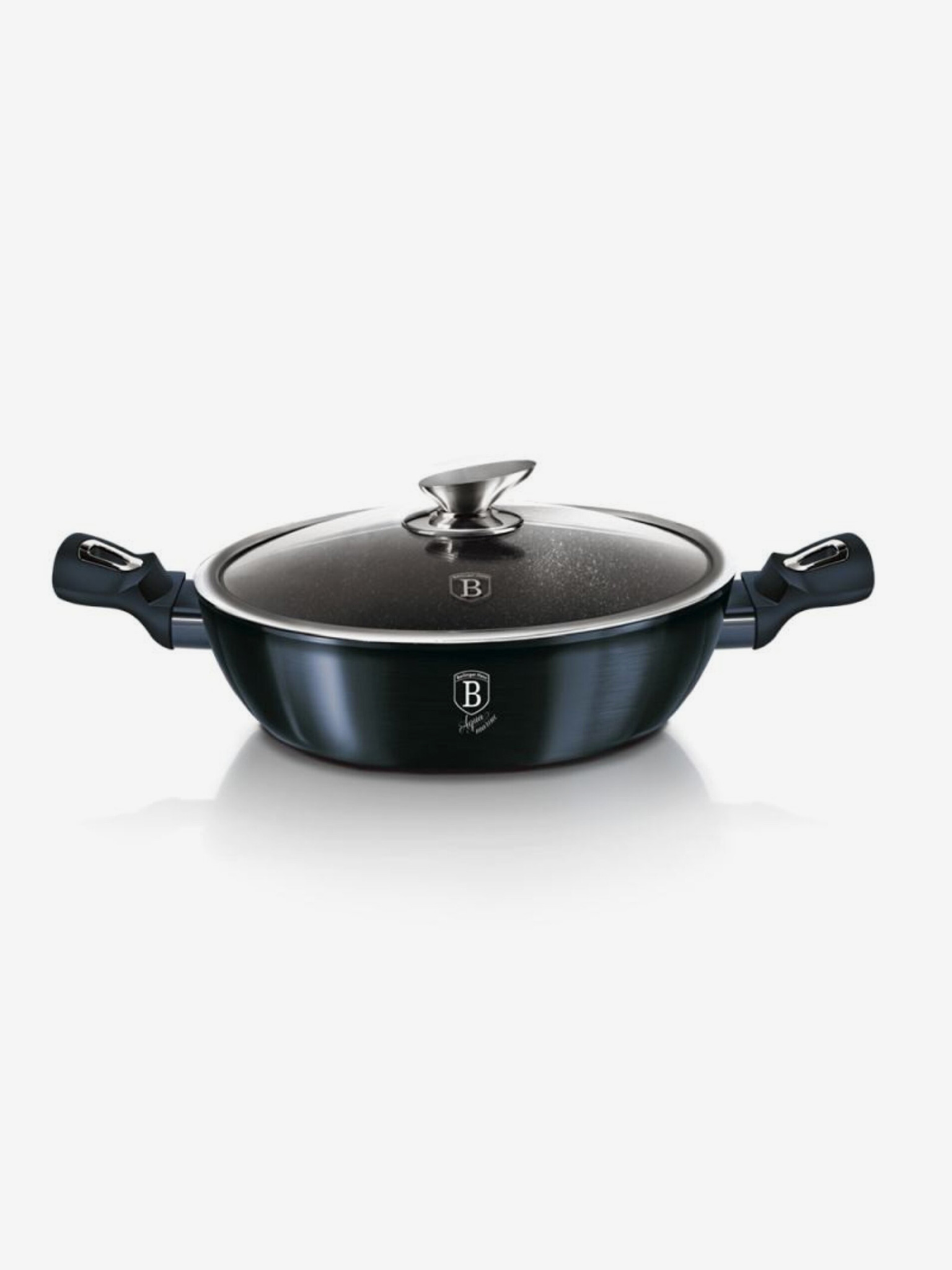 28 cm-es grillserpenyő fedővel Shiny Black Collection BERLINGERHAUS