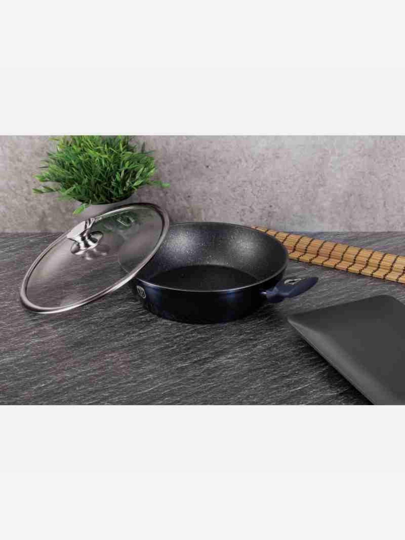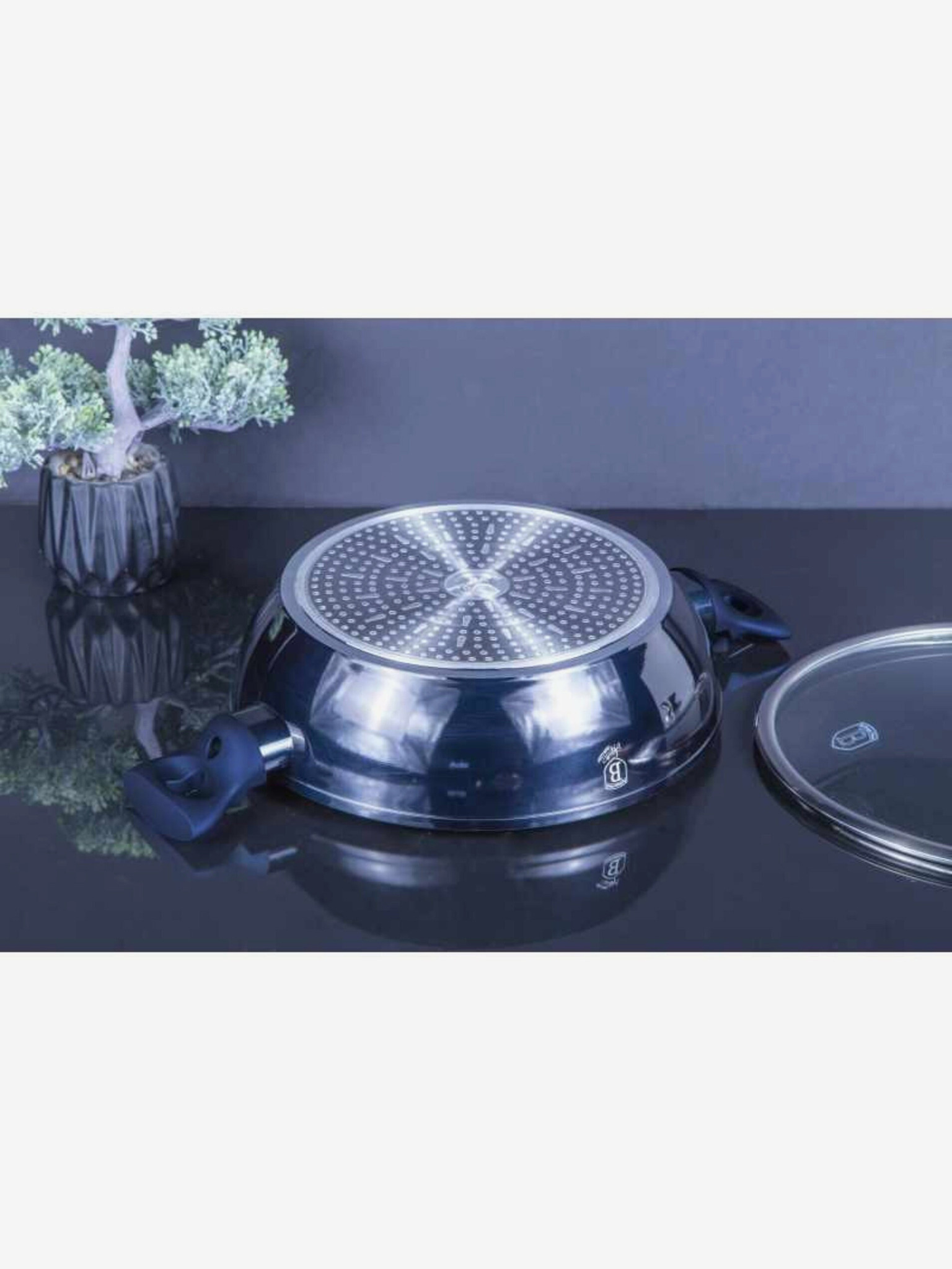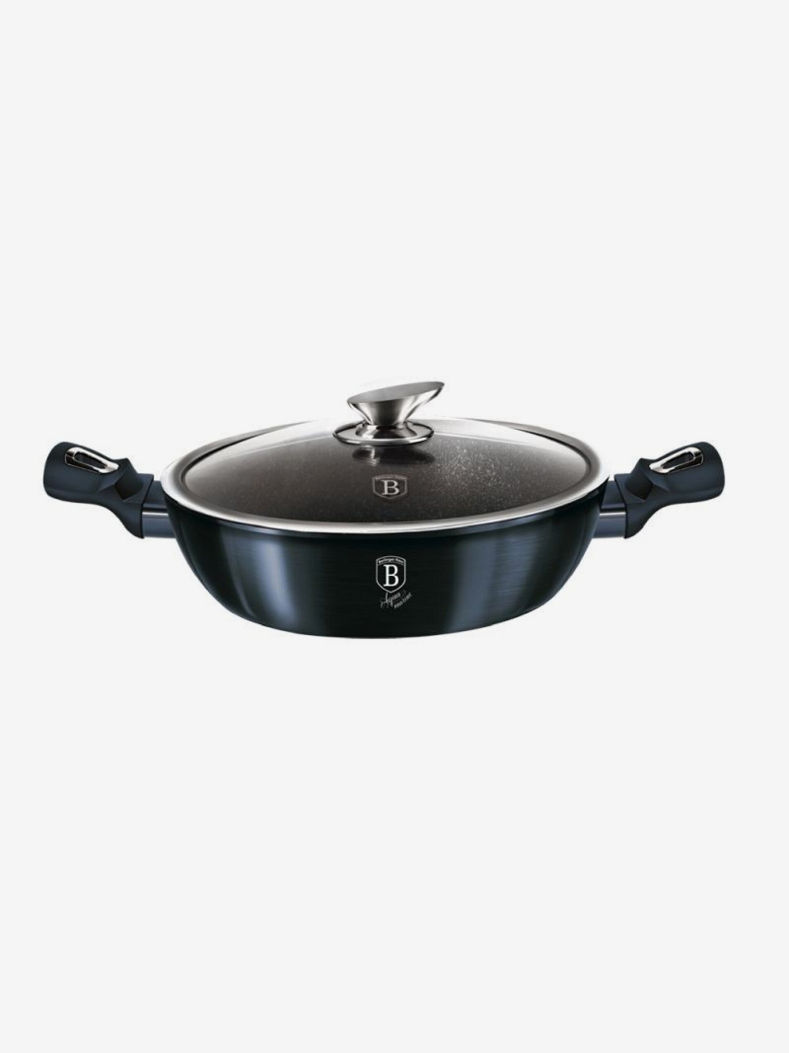 28 cm-es grillserpenyő fedővel Shiny Black Collection BERLINGERHAUS