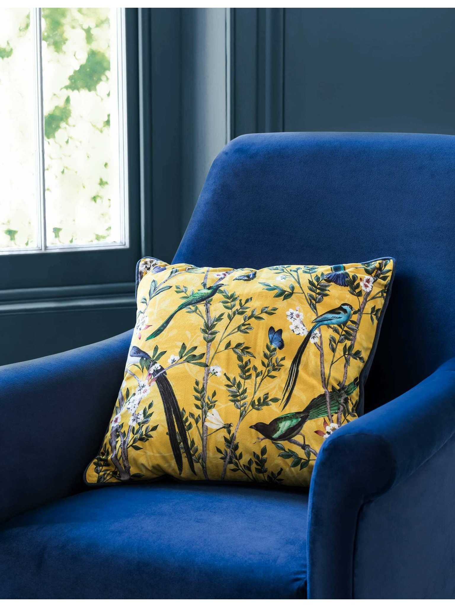 Marks & Spencer bársony párnahuzat madár mintával sötétkék