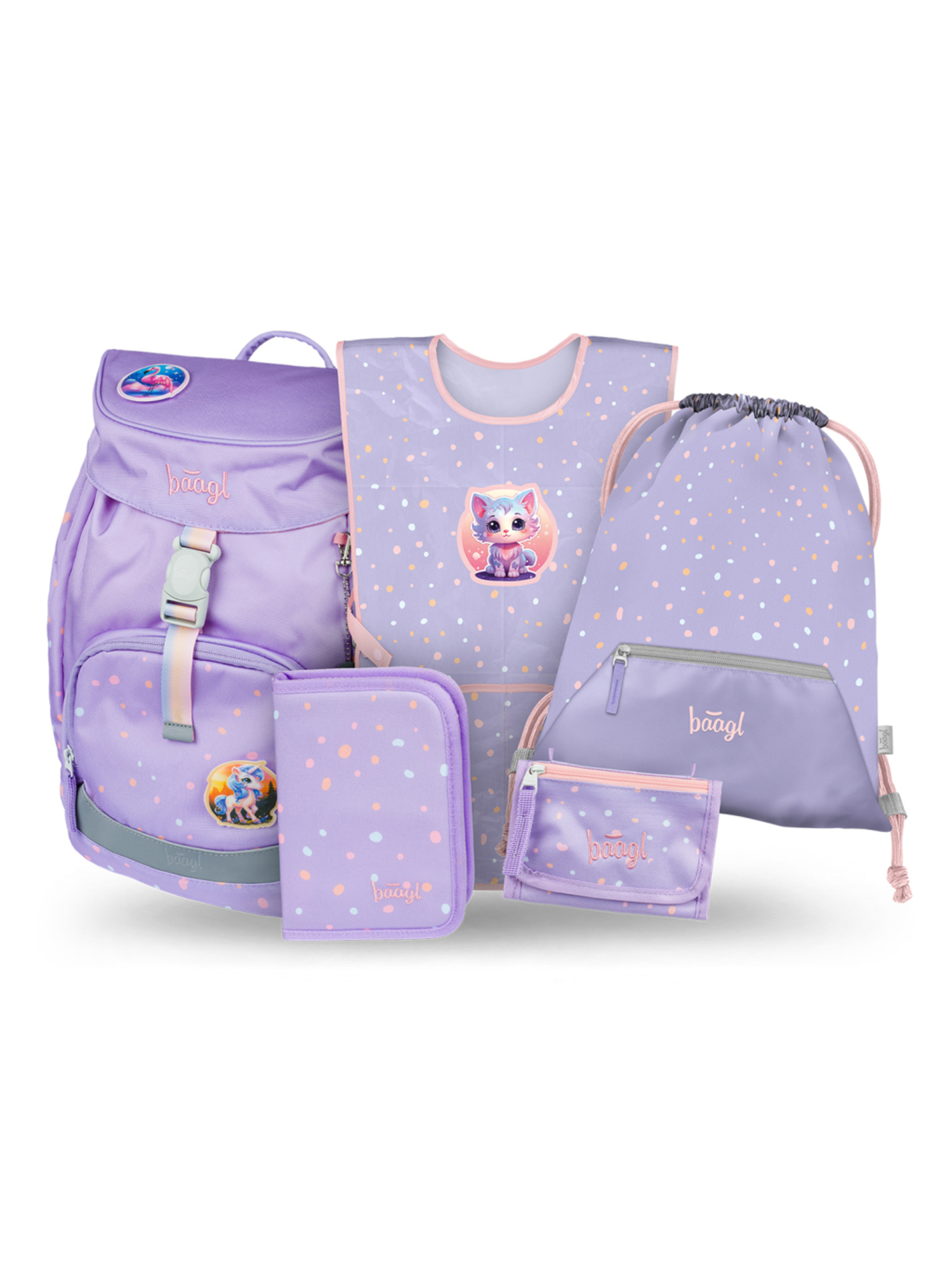 BAAGL SET 5 Skate Lilac: hátizsák, tolltartó, zsák, övtáska, noteszgépvédő