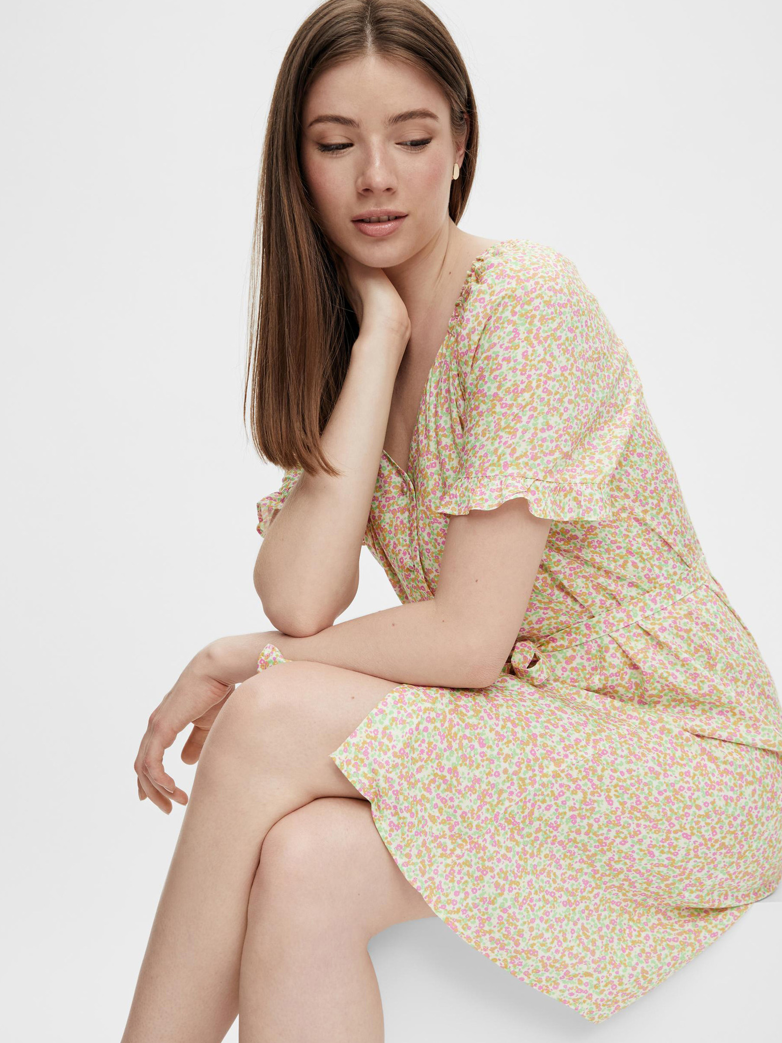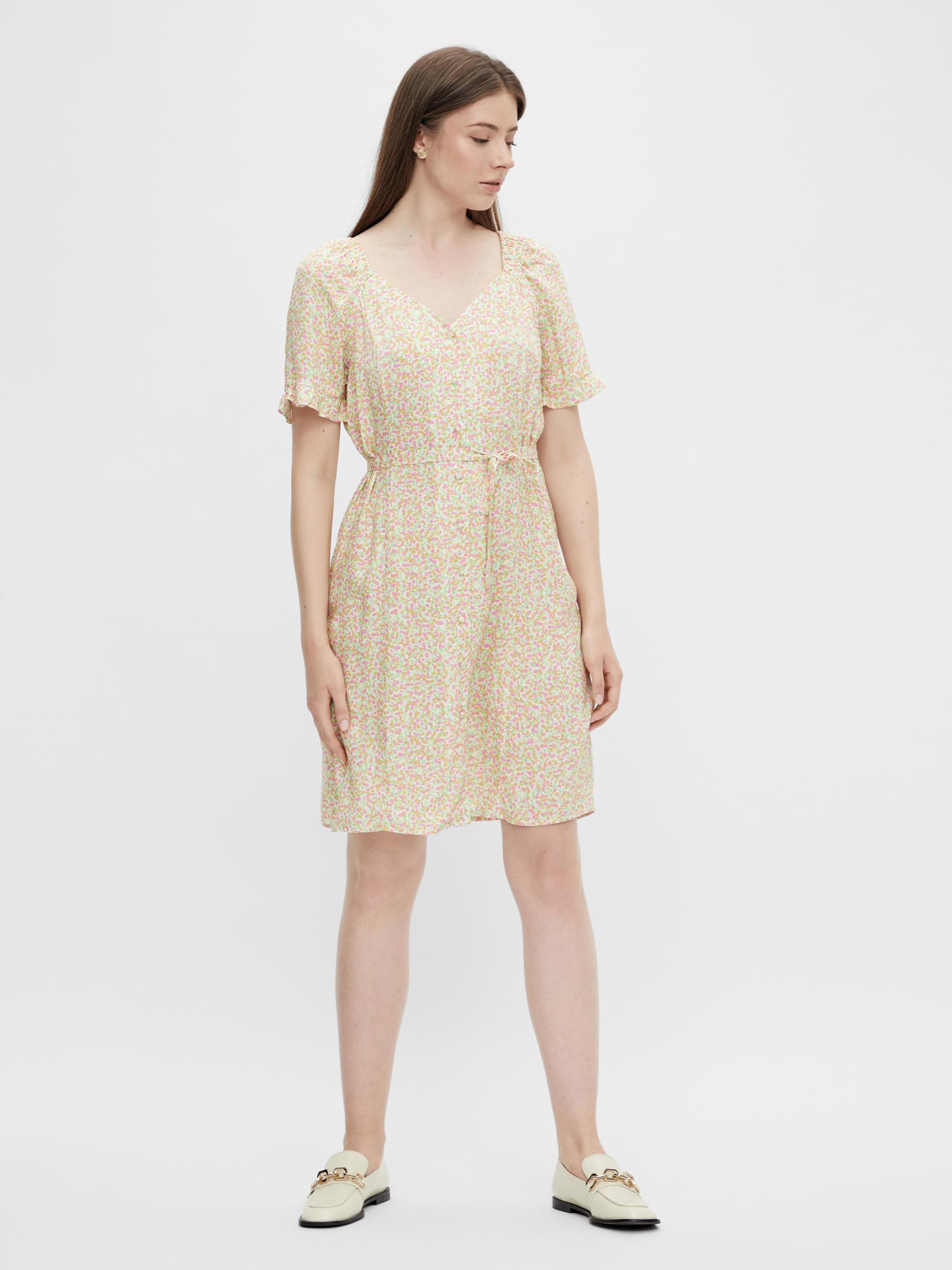 ORSAY krémszínű mintás női ruha övvel