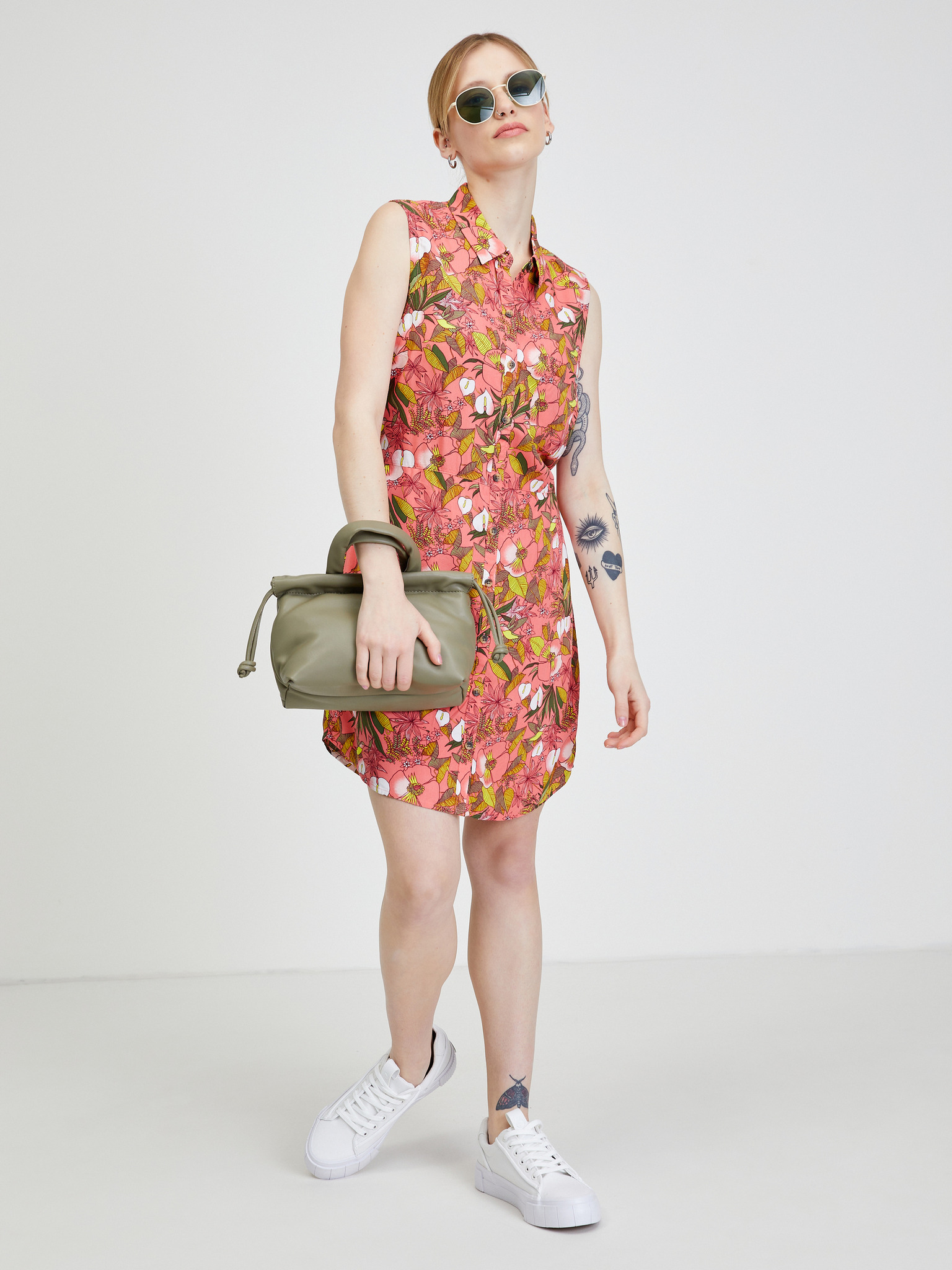 Fitt ruha ceruza nyakkivágással - rózsaszín nagy virágok Numoco BOYKA