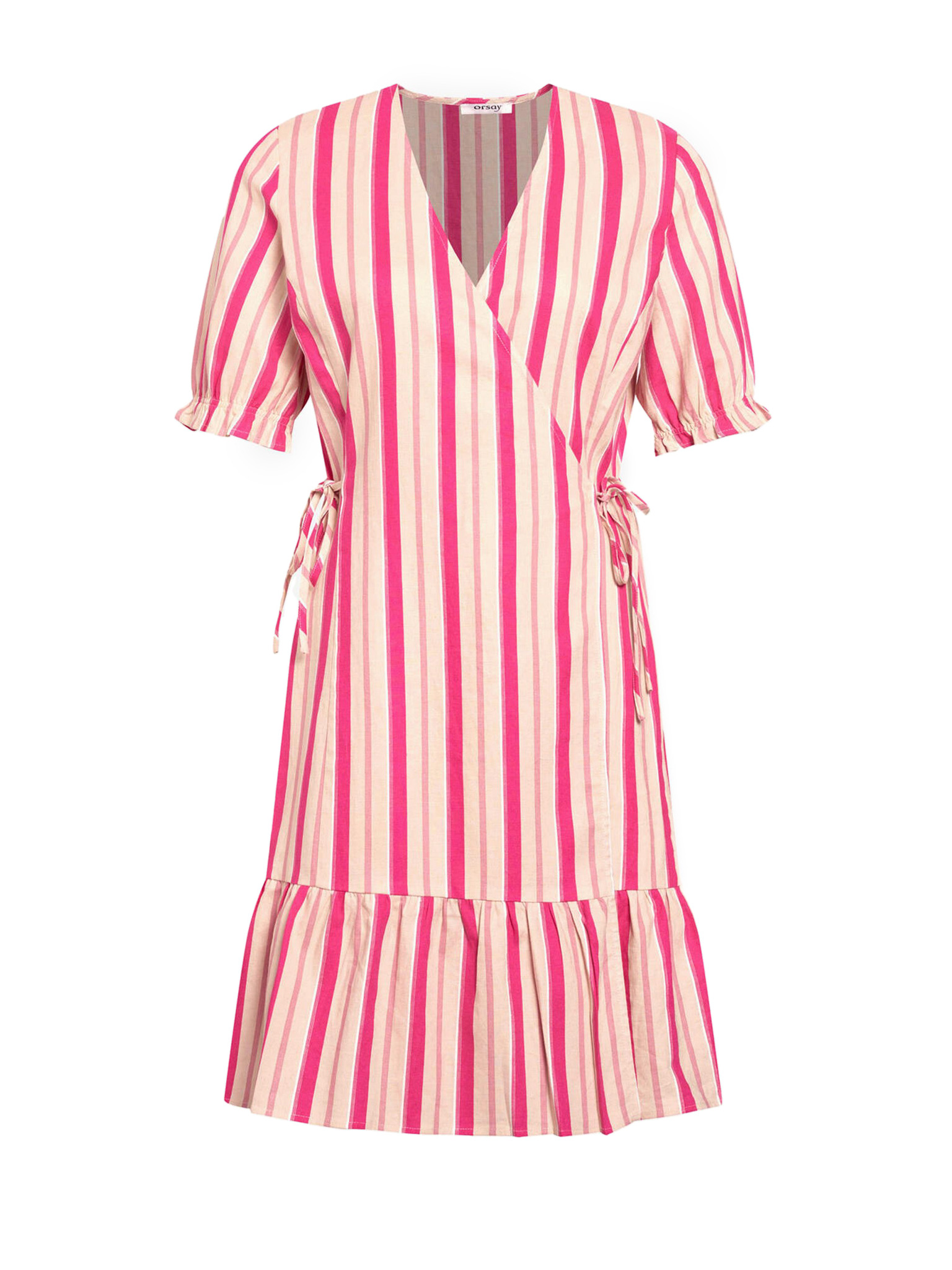 ORSAY rózsaszín csíkos lenvászon ruha szabadon hagyott vállakkal