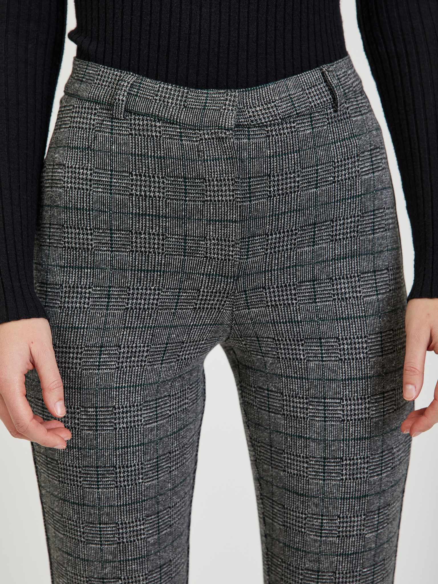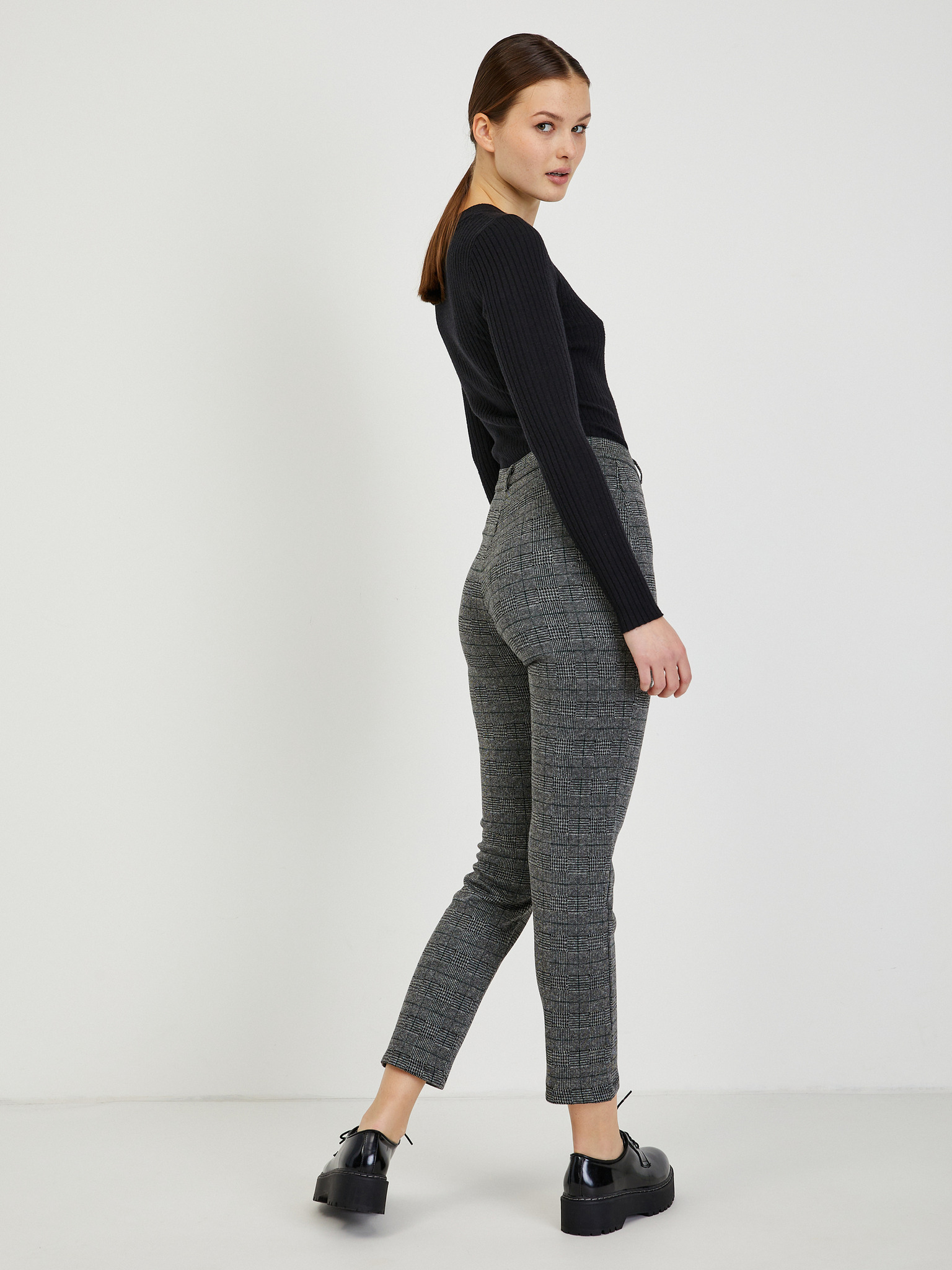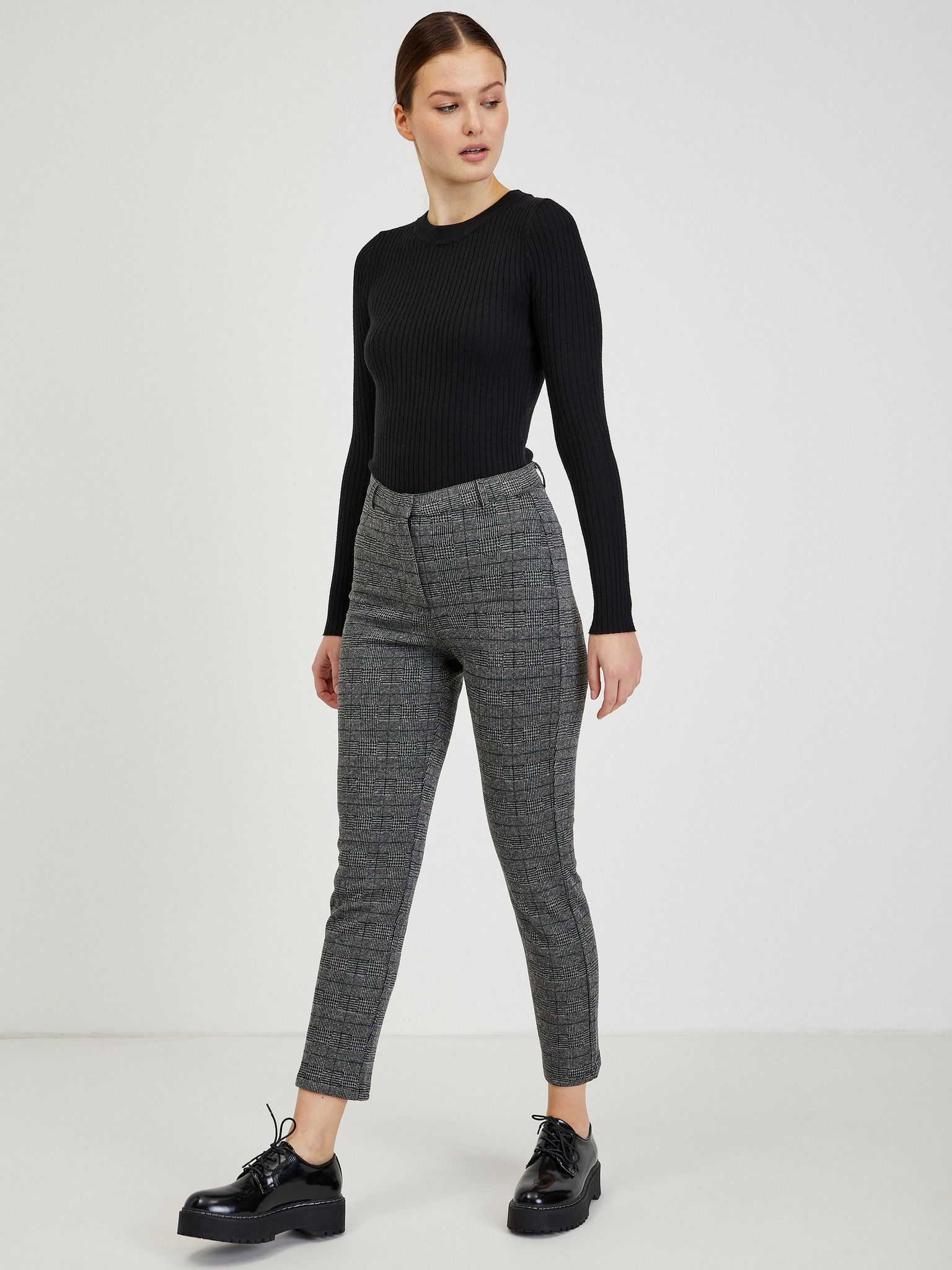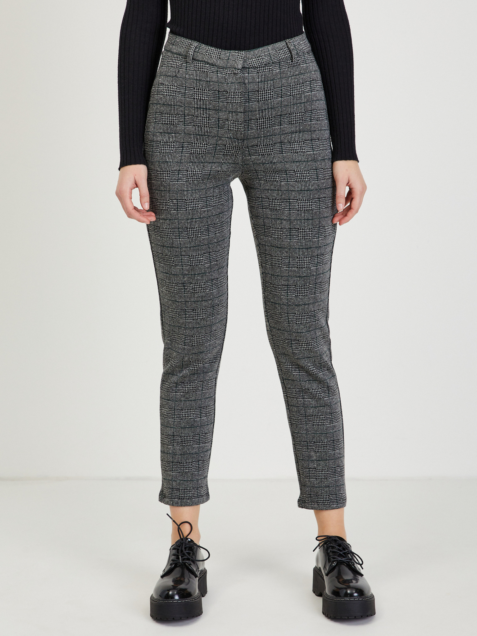 Szürke kockás egyenes szárú nadrág Moodo