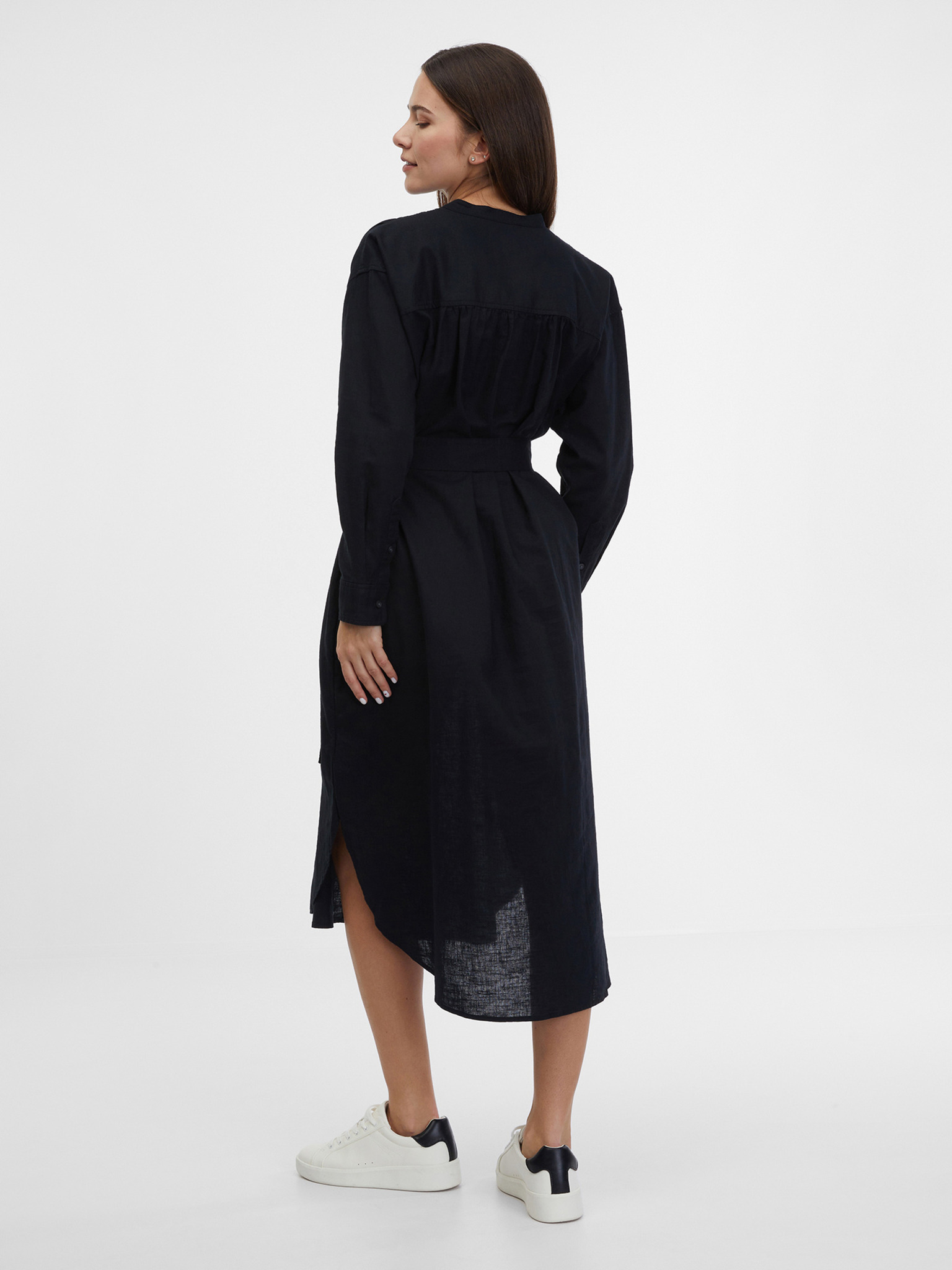 Fekete női ing ruha övvel