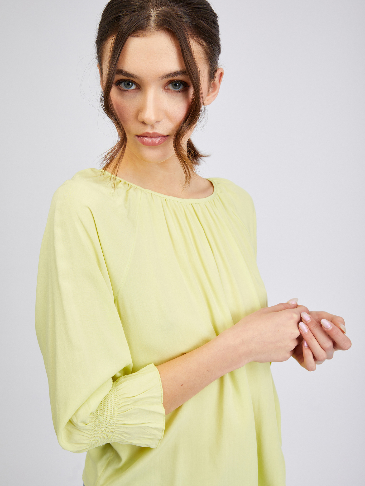 Blúz széles ujjakkal olivazöld Moodo