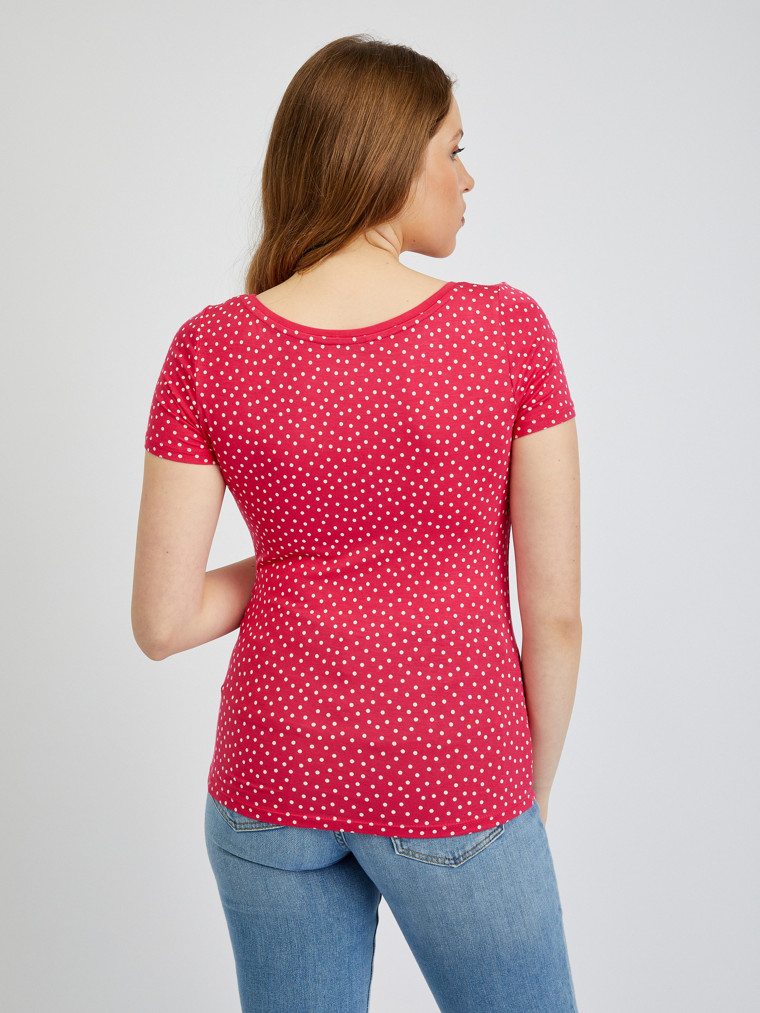 ORSAY sötétrószaszín pöttyös női póló