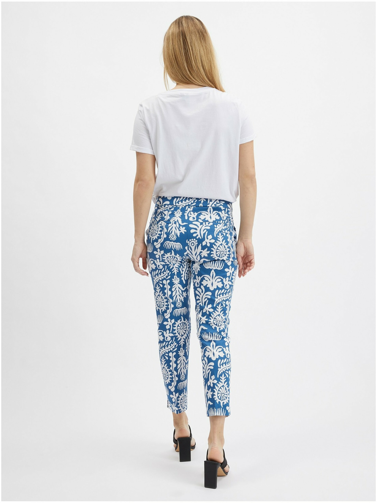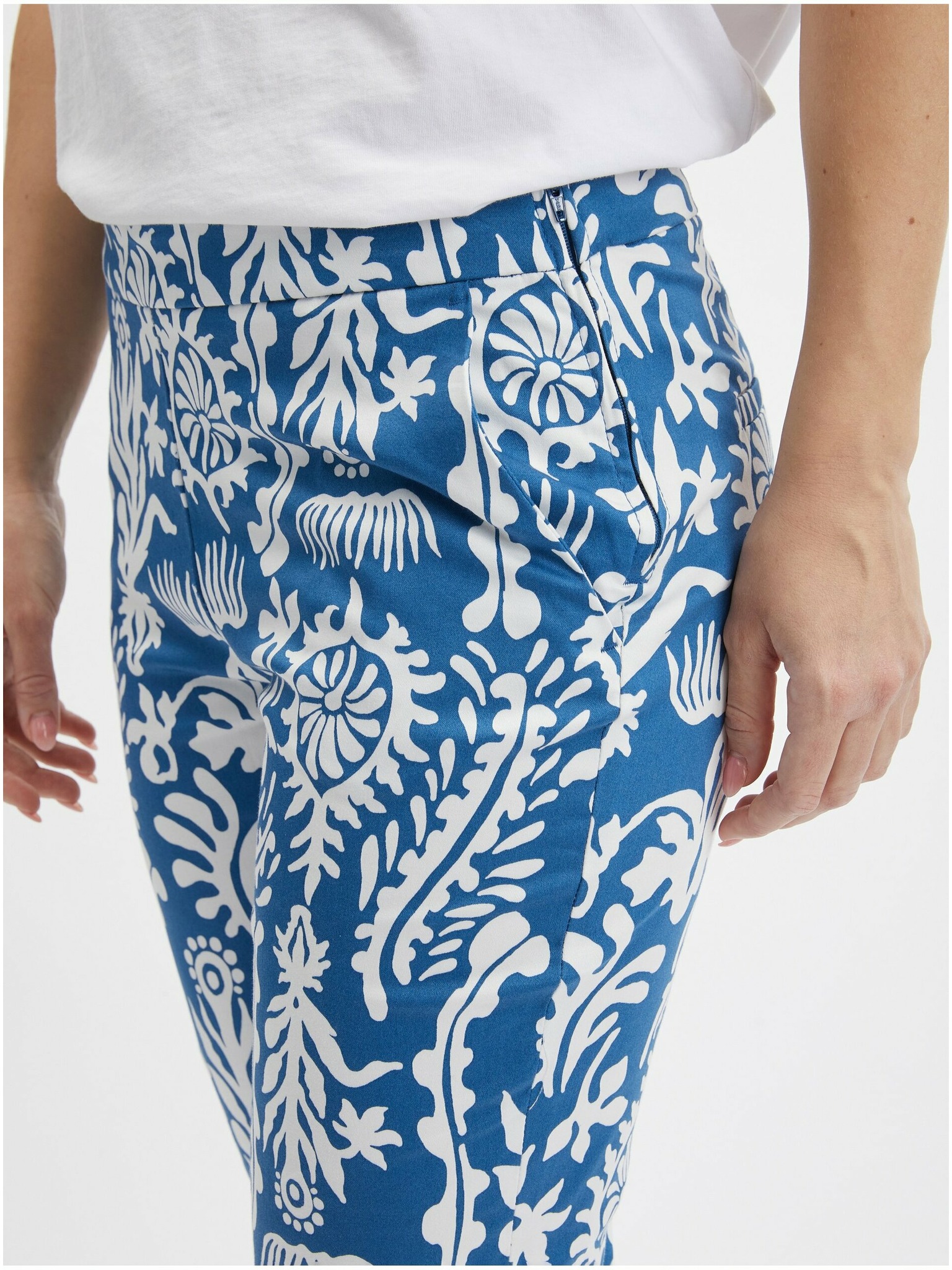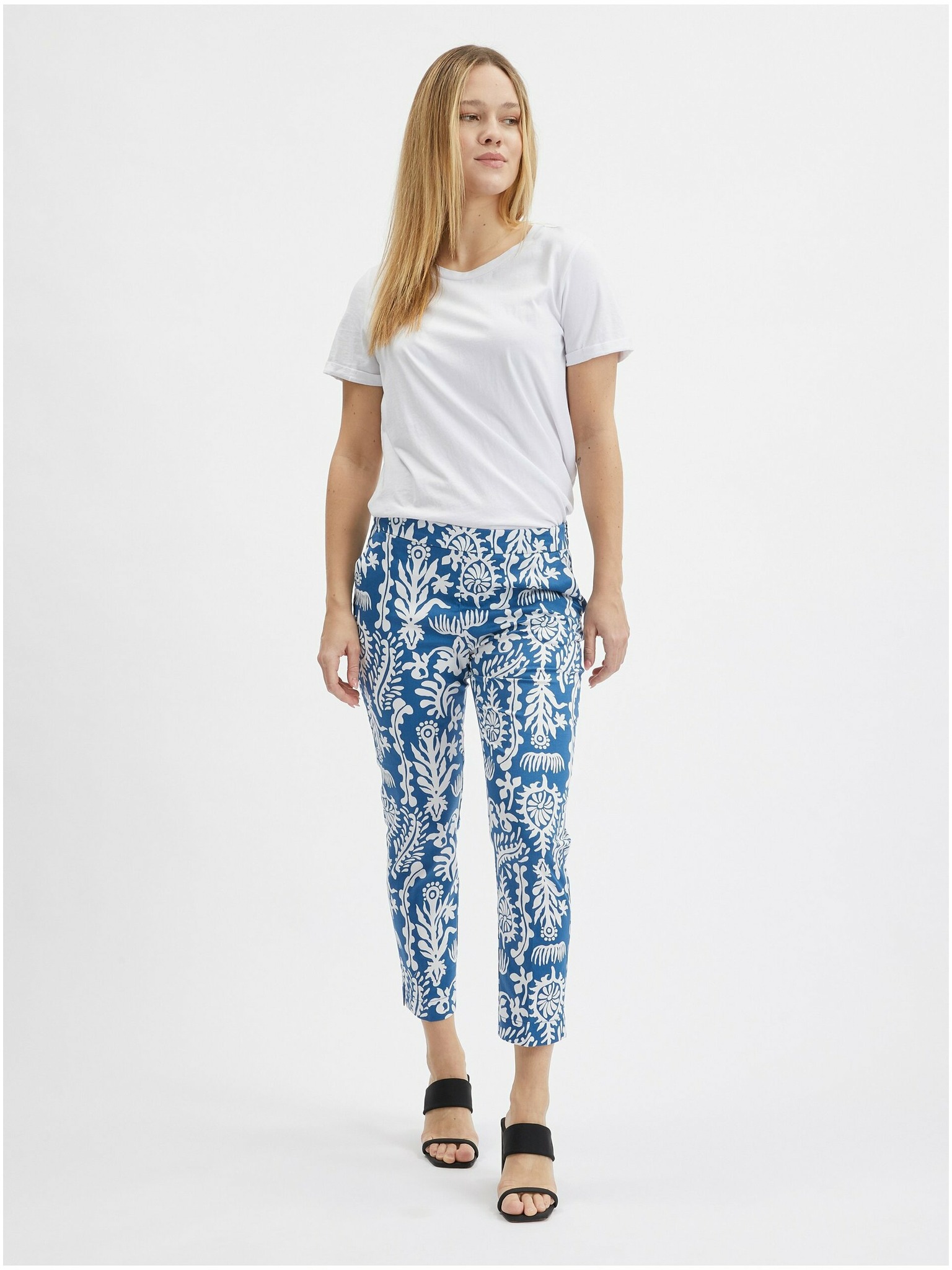ORSAY sárga-kék virágmintás rövidített női nadrág