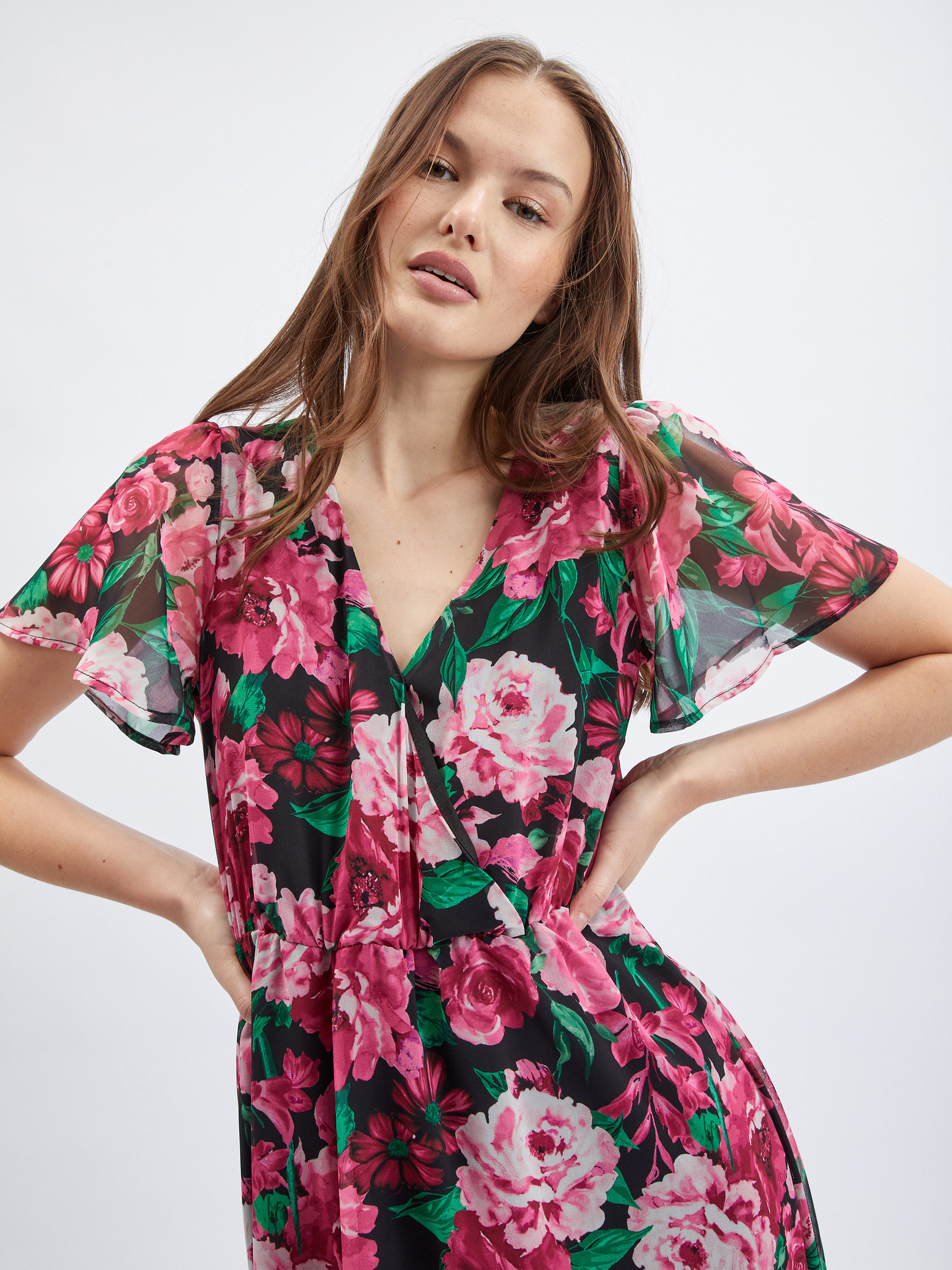 ORSAY fekete-rózsaszín virágmintás női ruha