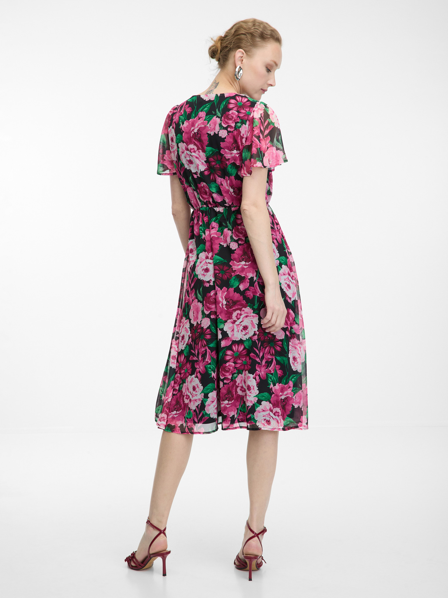 ORSAY fekete-rózsaszín virágmintás női ruha