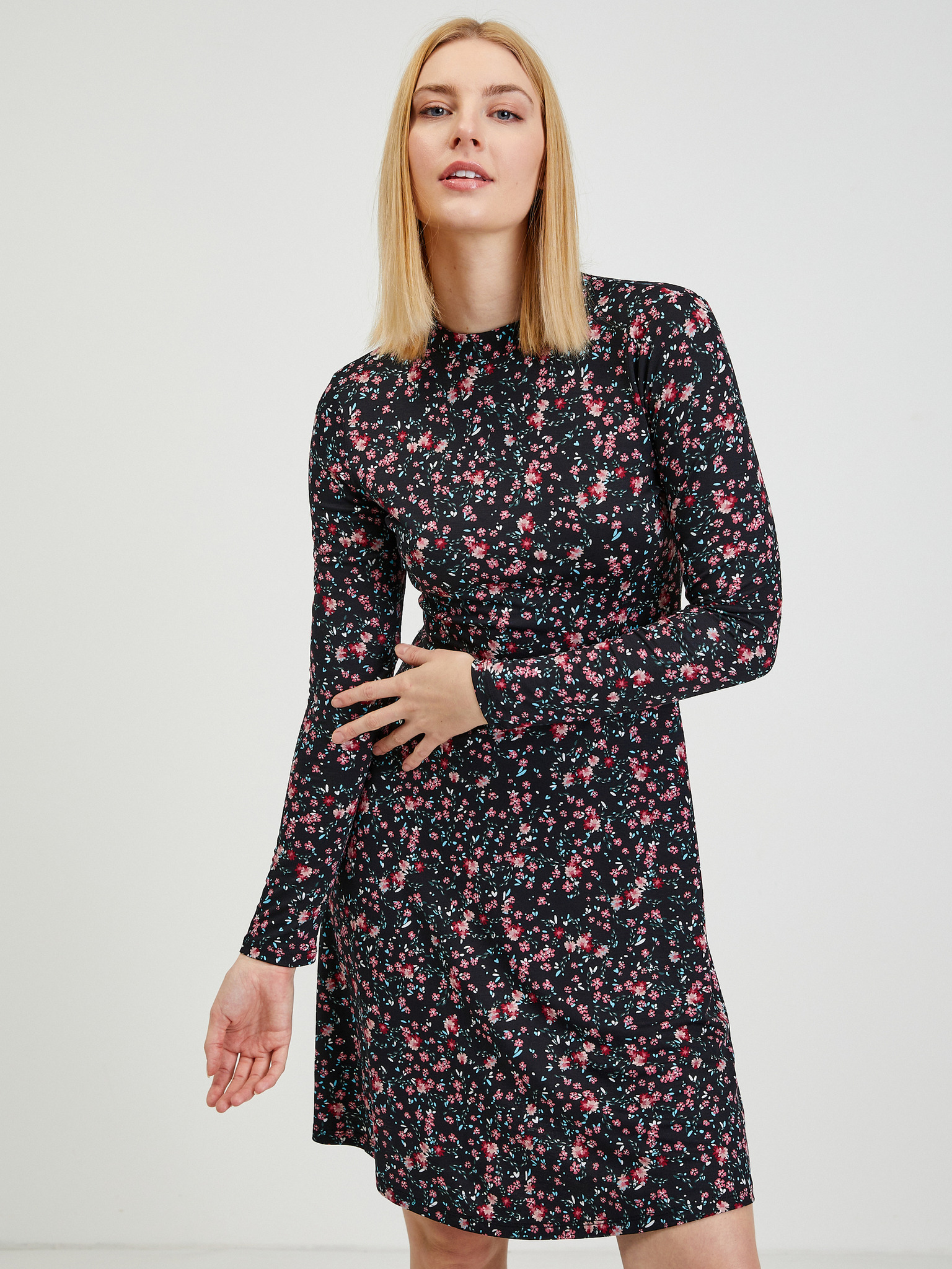 ORSAY fekete virágmintás női ruha