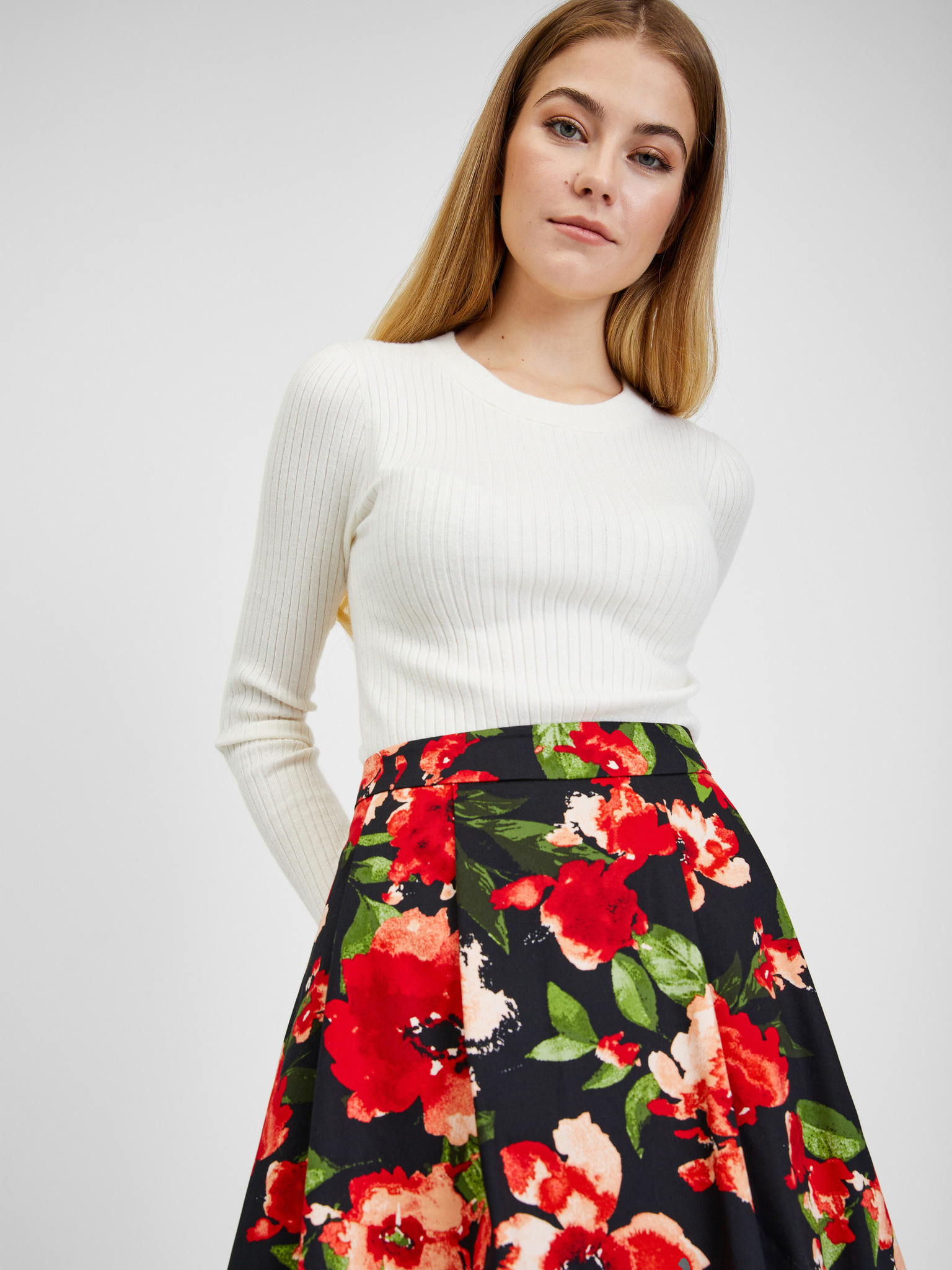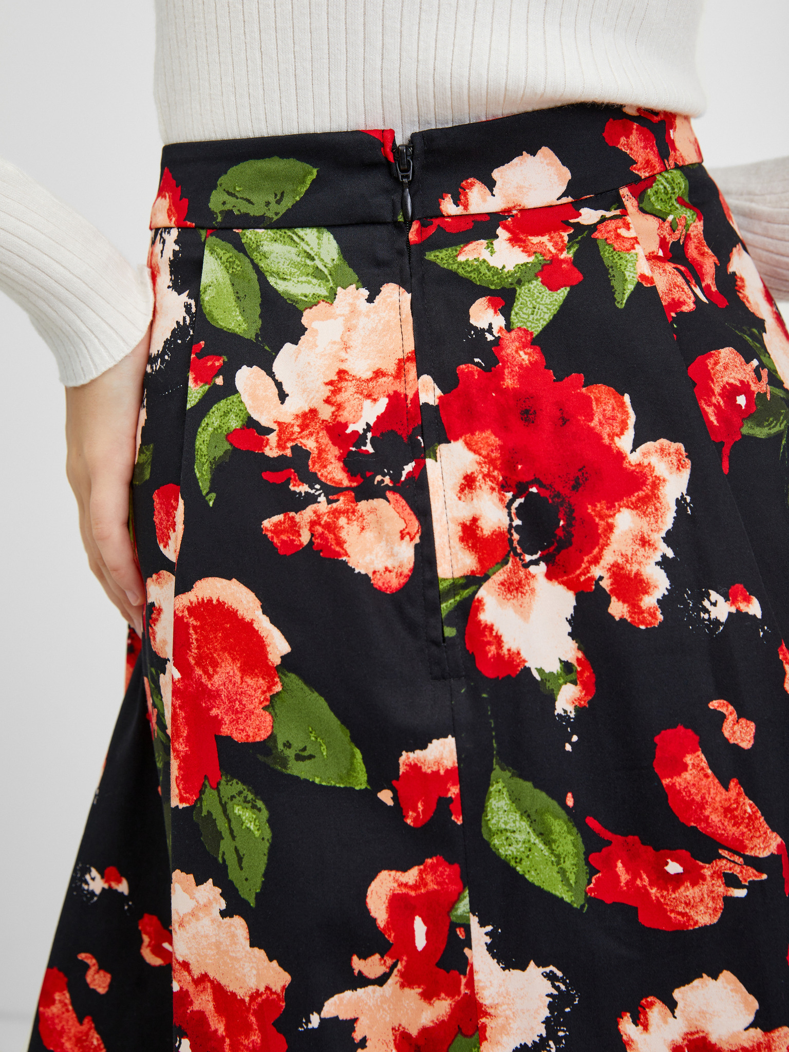 ORSAY fekete női midi szoknya virágmintával