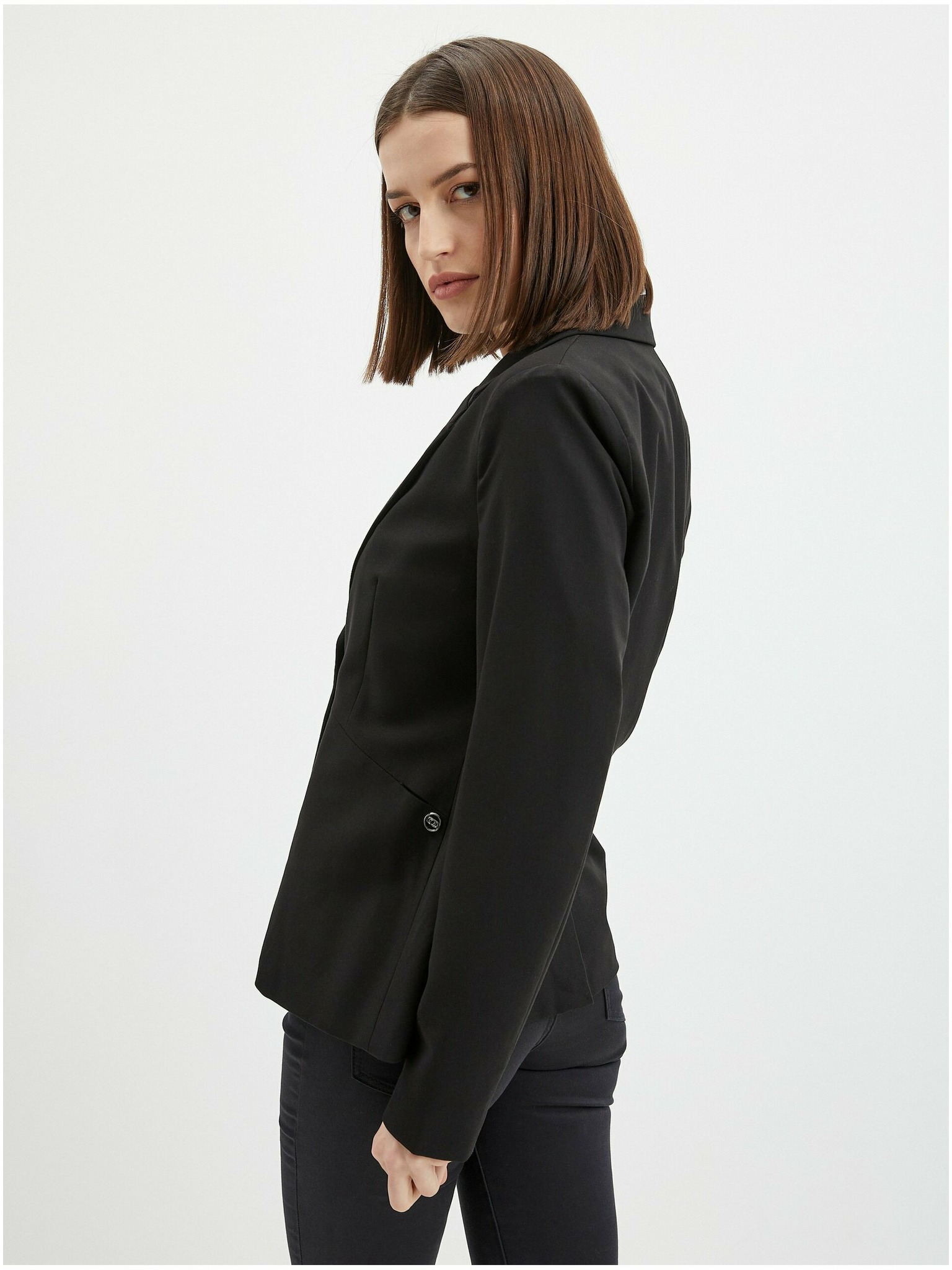 Zakó ráncolt 3/4-es ujjal fekete Moodo