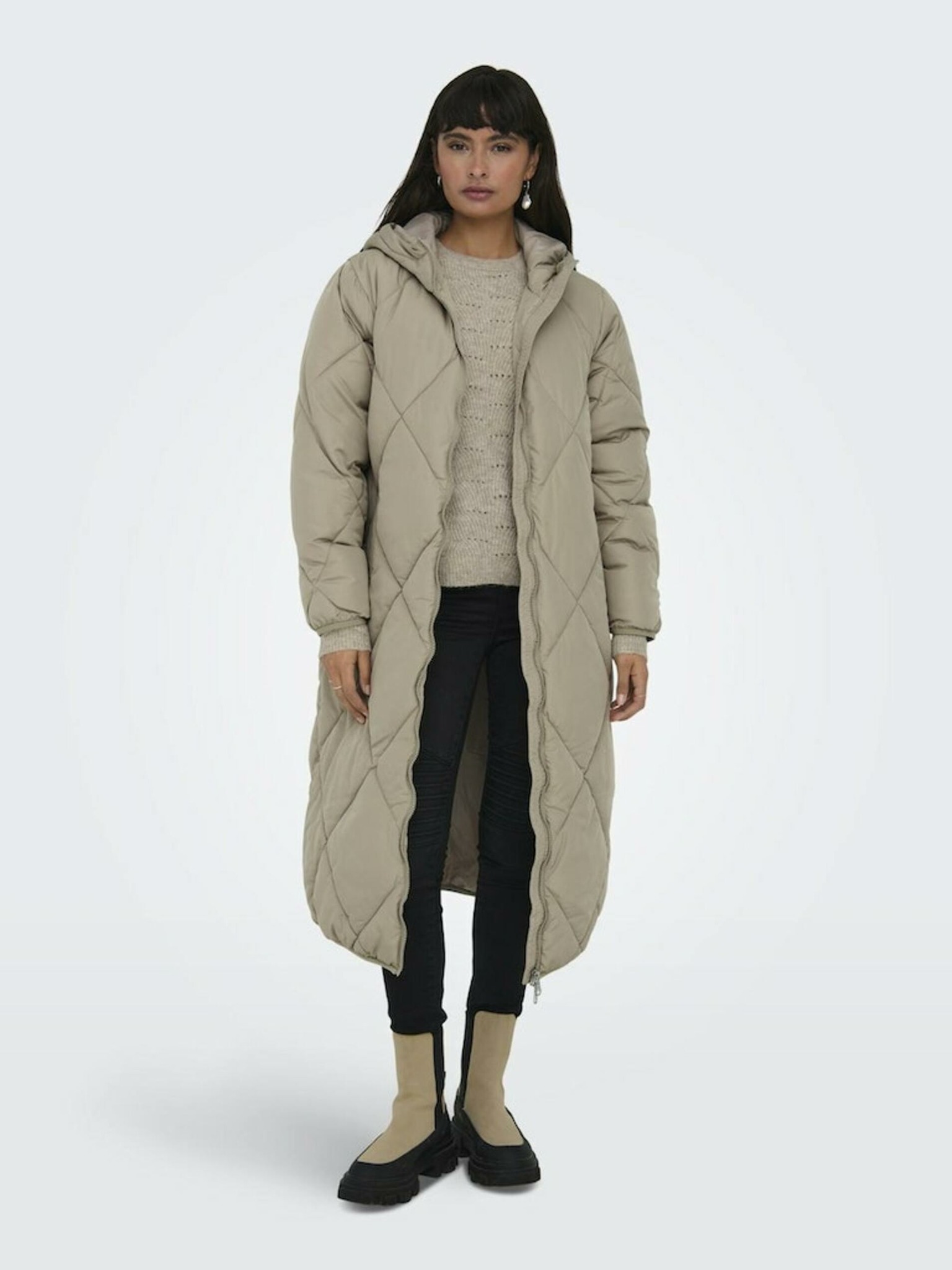 Moodo steppelt kapucnis bézs kabát