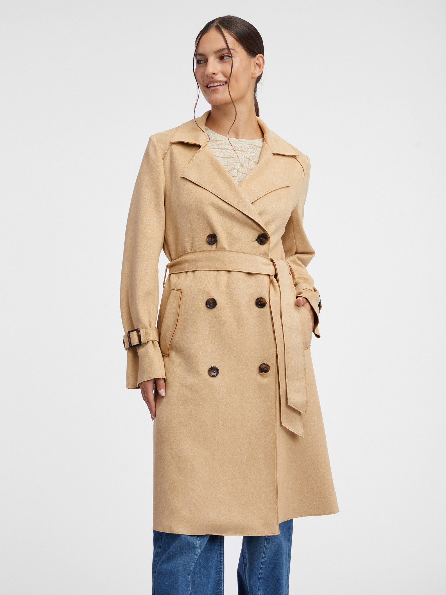 Bézs női kabát övvel Edoti