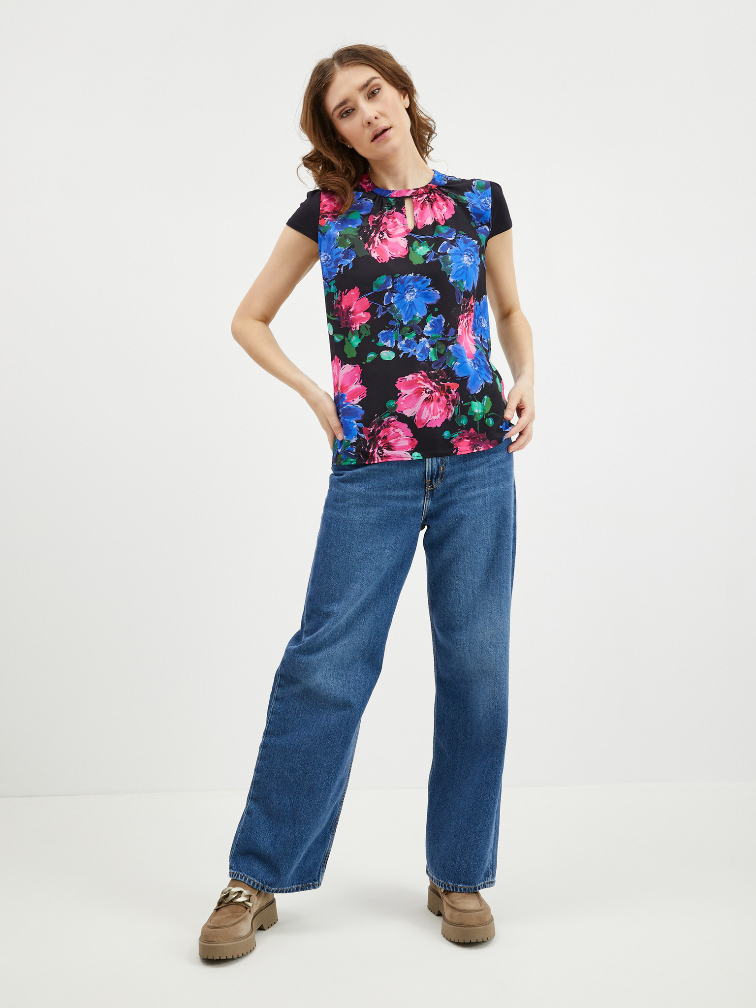 Fekete virágmintás női blúz ORSAY