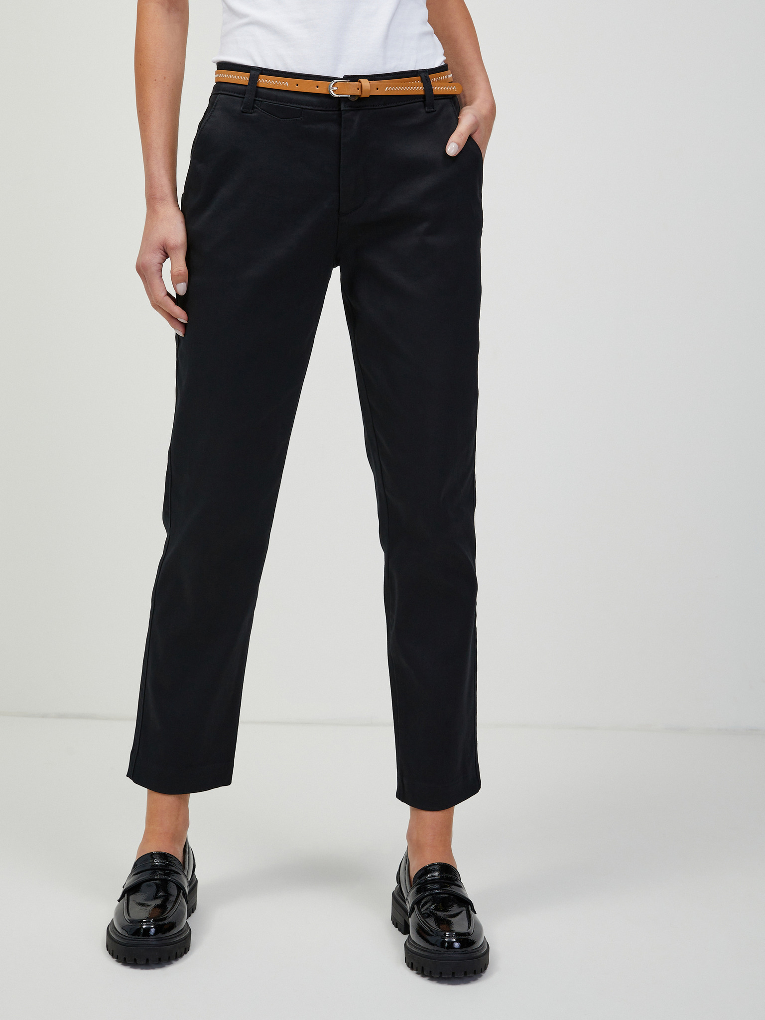 ORSAY fekete rövidített chino női nadrág övvel
