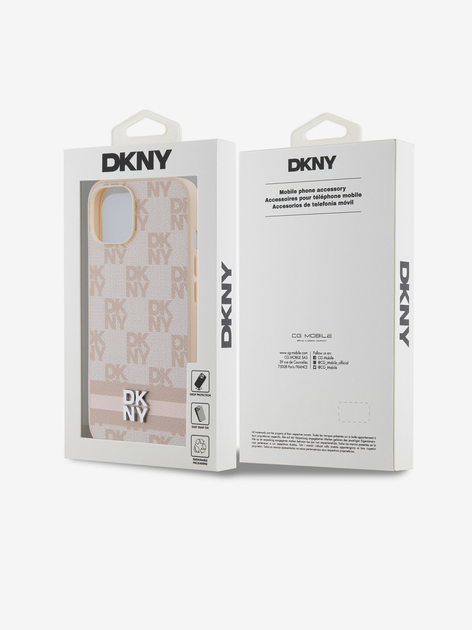 DKNY PU bőr ismétlődő mintás tonális csíkos hátlapi borító iPhone 16 Pro Max bézs színűhöz