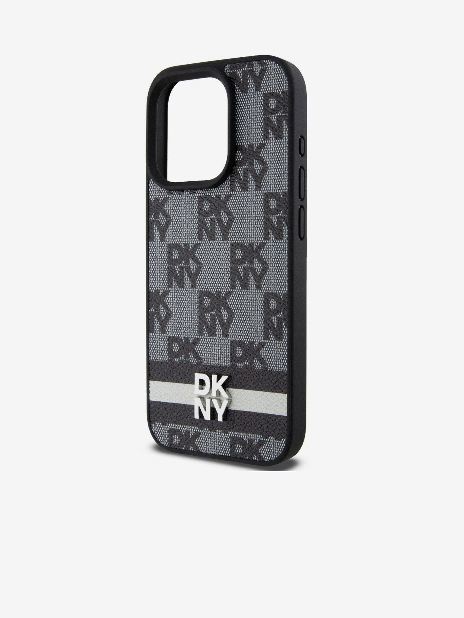 DKNY PC/TPU ismétlődő mintás, tónusos csíkos Magsafe hátlap iPhone 16 Pro-hoz Fekete