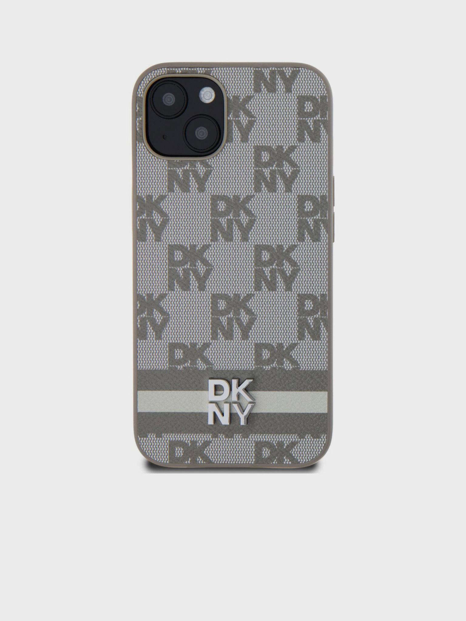 PU bőr ismétlődő mintás, tónusos csíkos hátlap iPhone 15 Pro bézs DKNY DKNY