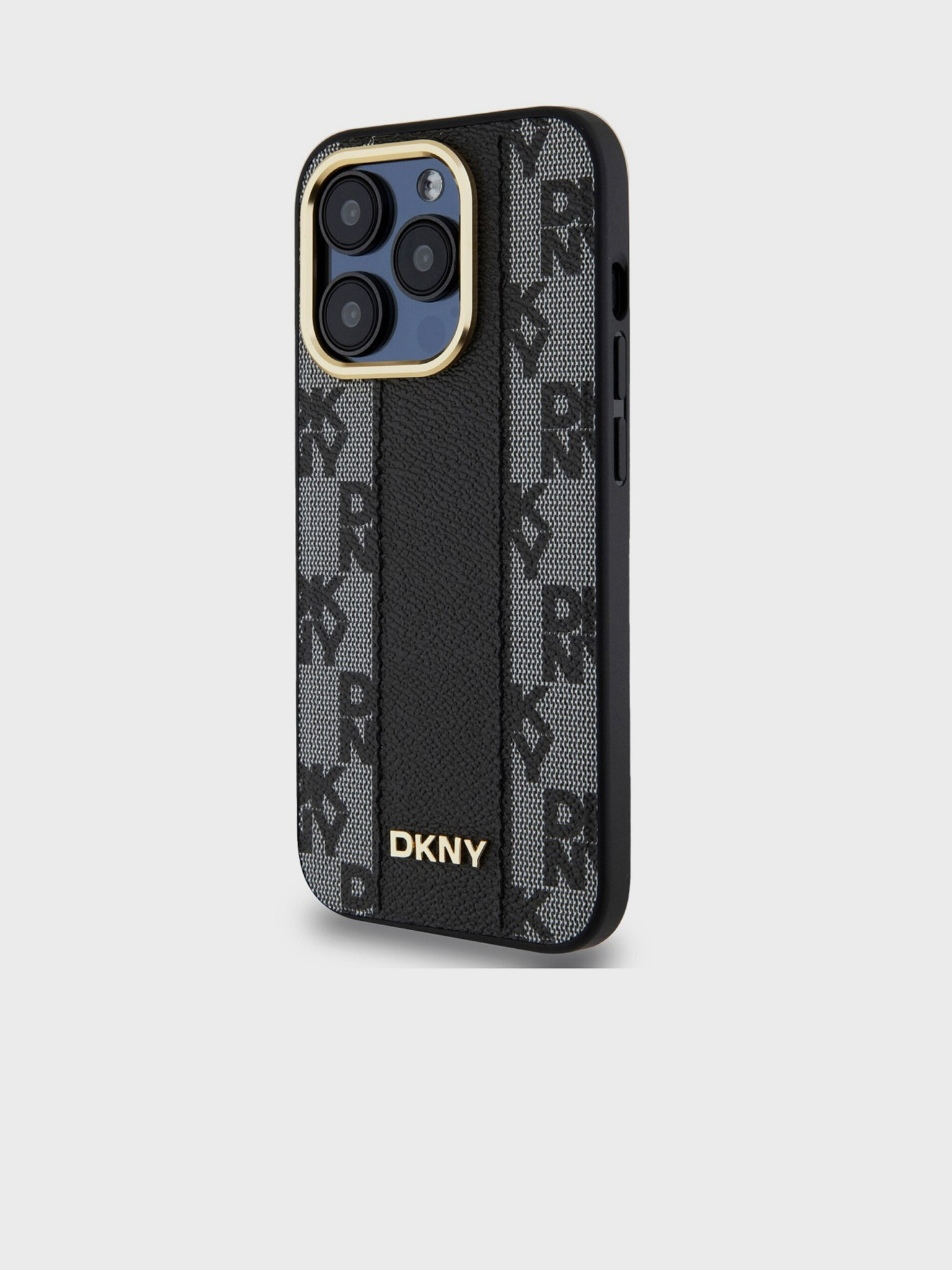 DKNY PU bőr ismétlődő mintás tonális csíkos hátlapi borító iPhone 16 Pro Max bézs színűhöz