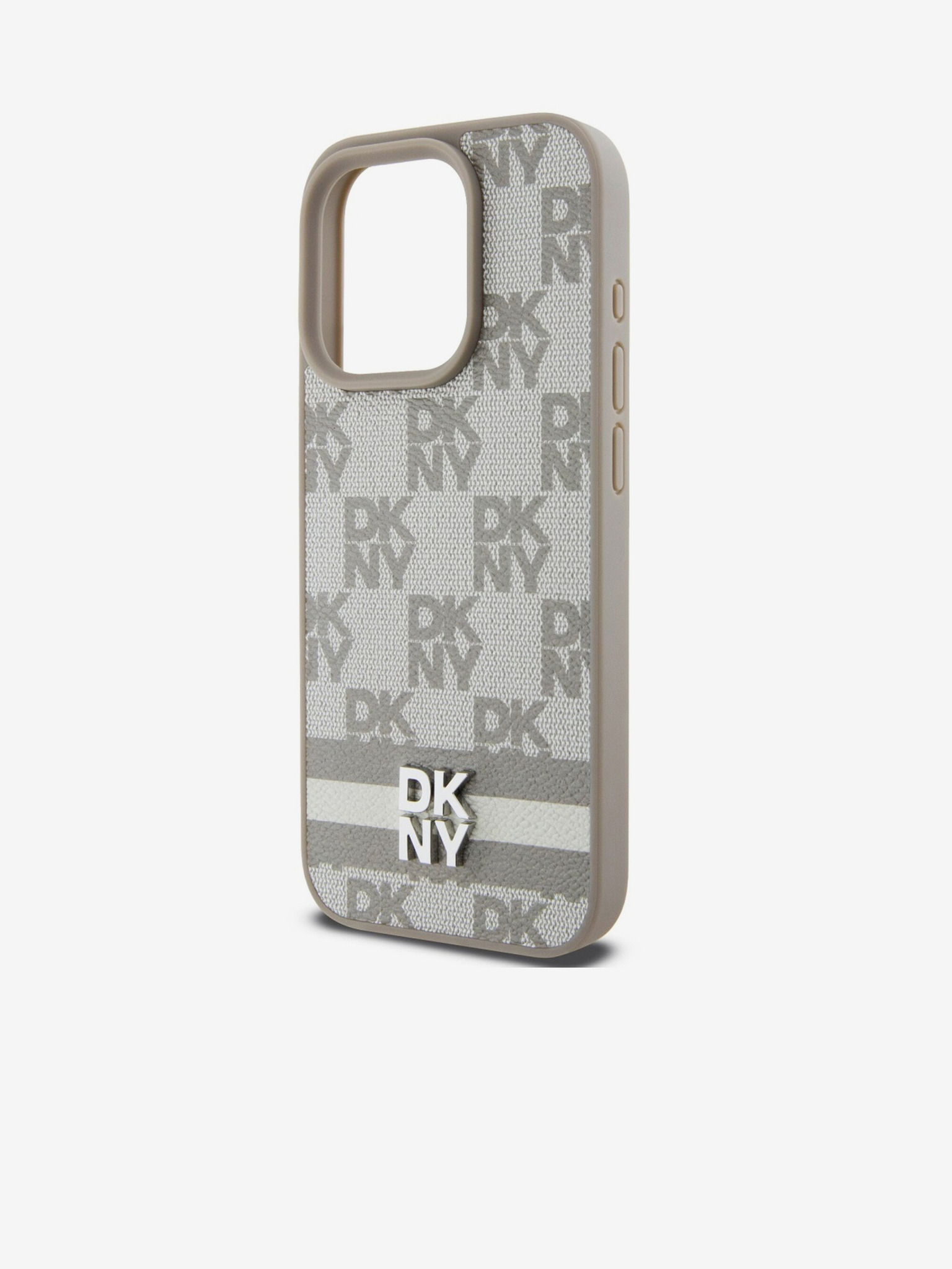DKNY PU bőr ismétlődő mintás tonális csíkos hátlapi borító iPhone 16 Pro Max bézs színűhöz