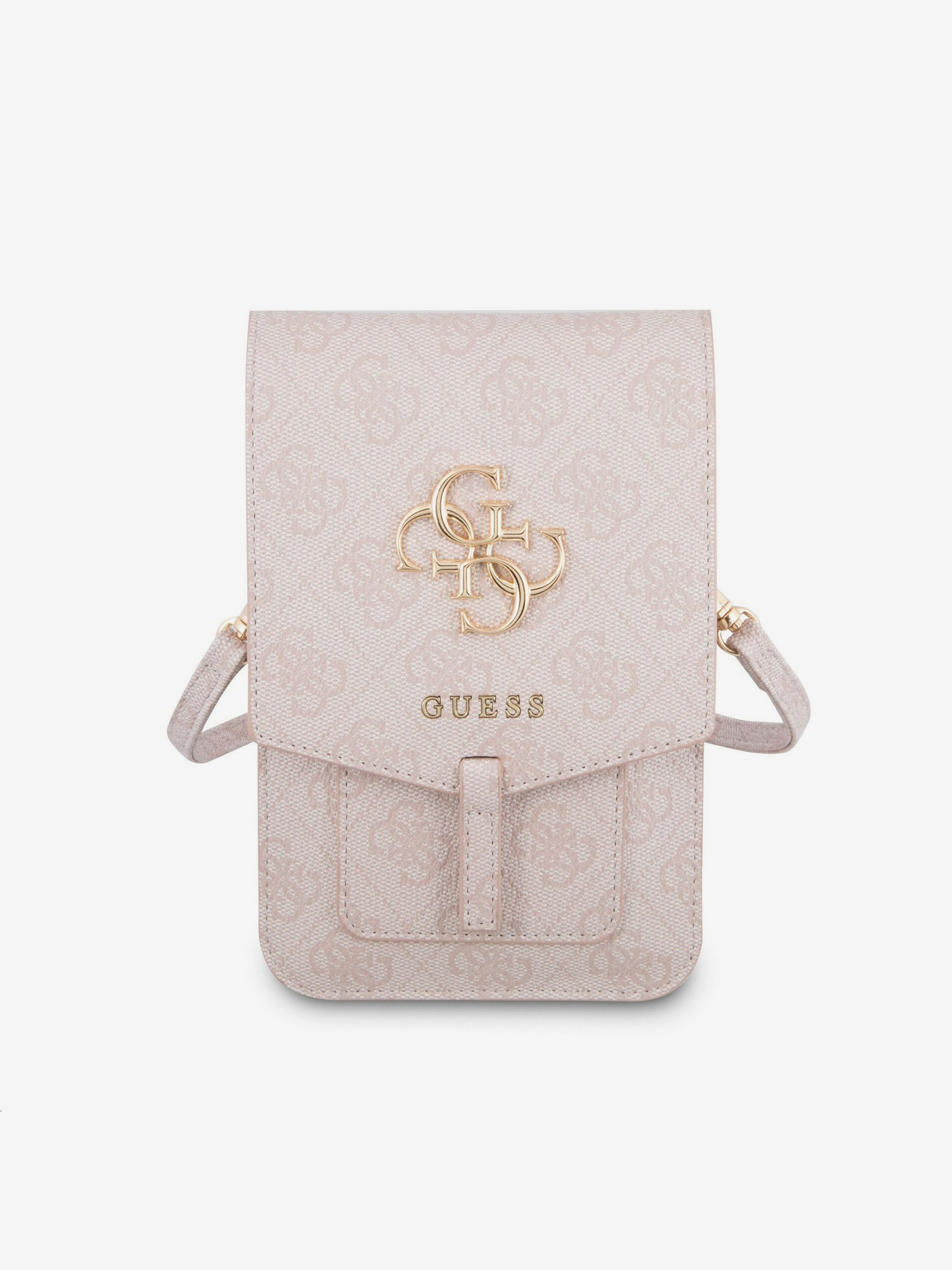 Guess PU 4G Fém Logo Szíj Hátlap iPhone 16-hoz Barna