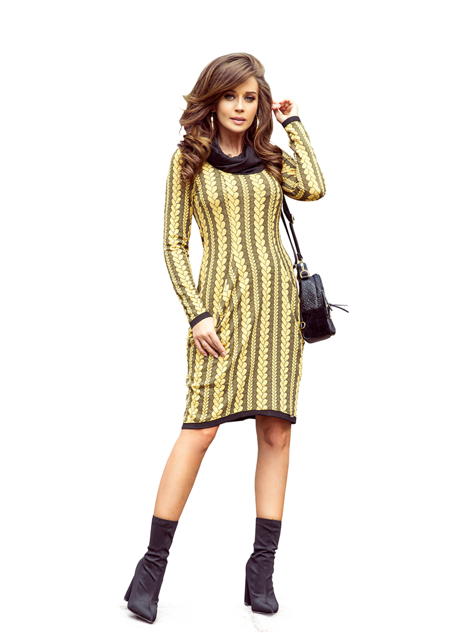 Sárga virágmintás midi ruha Moodo