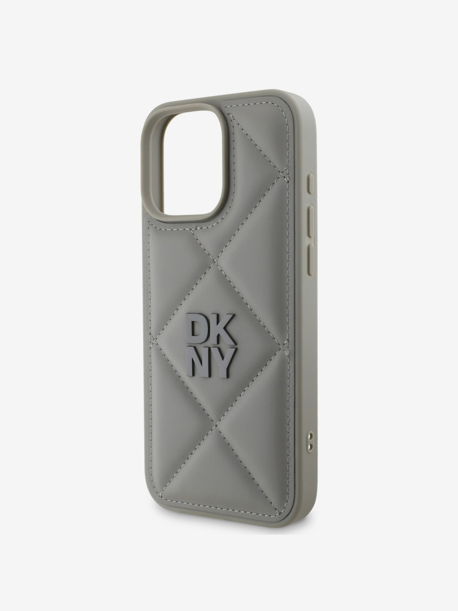 DKNY PU-bőr steppelt stack logós hátsó borító iPhone 16 Pro Max készülékhez Szürke