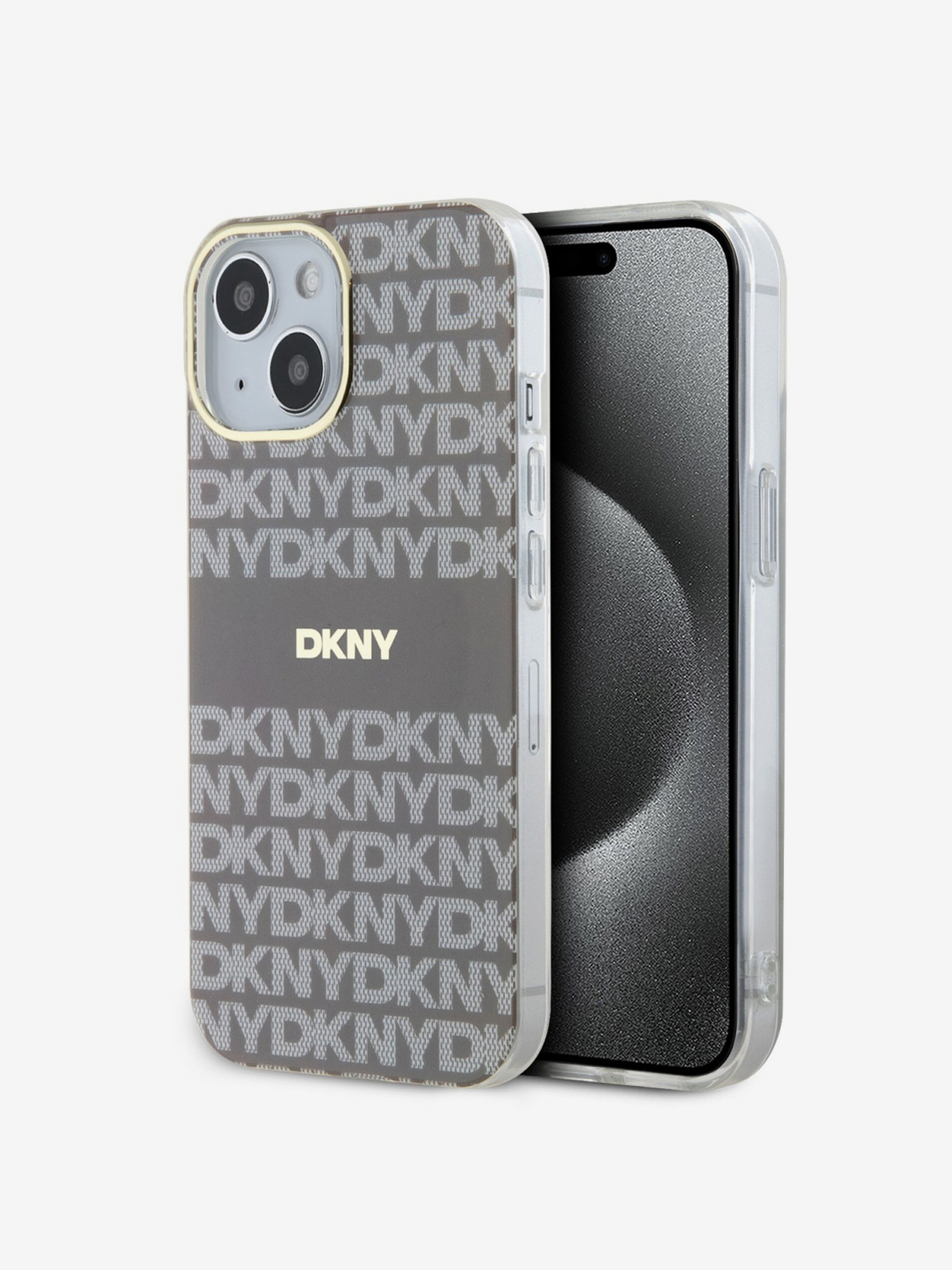PU bőr ismétlődő mintás, tónusos csíkos hátlap iPhone 15 Pro bézs DKNY DKNY