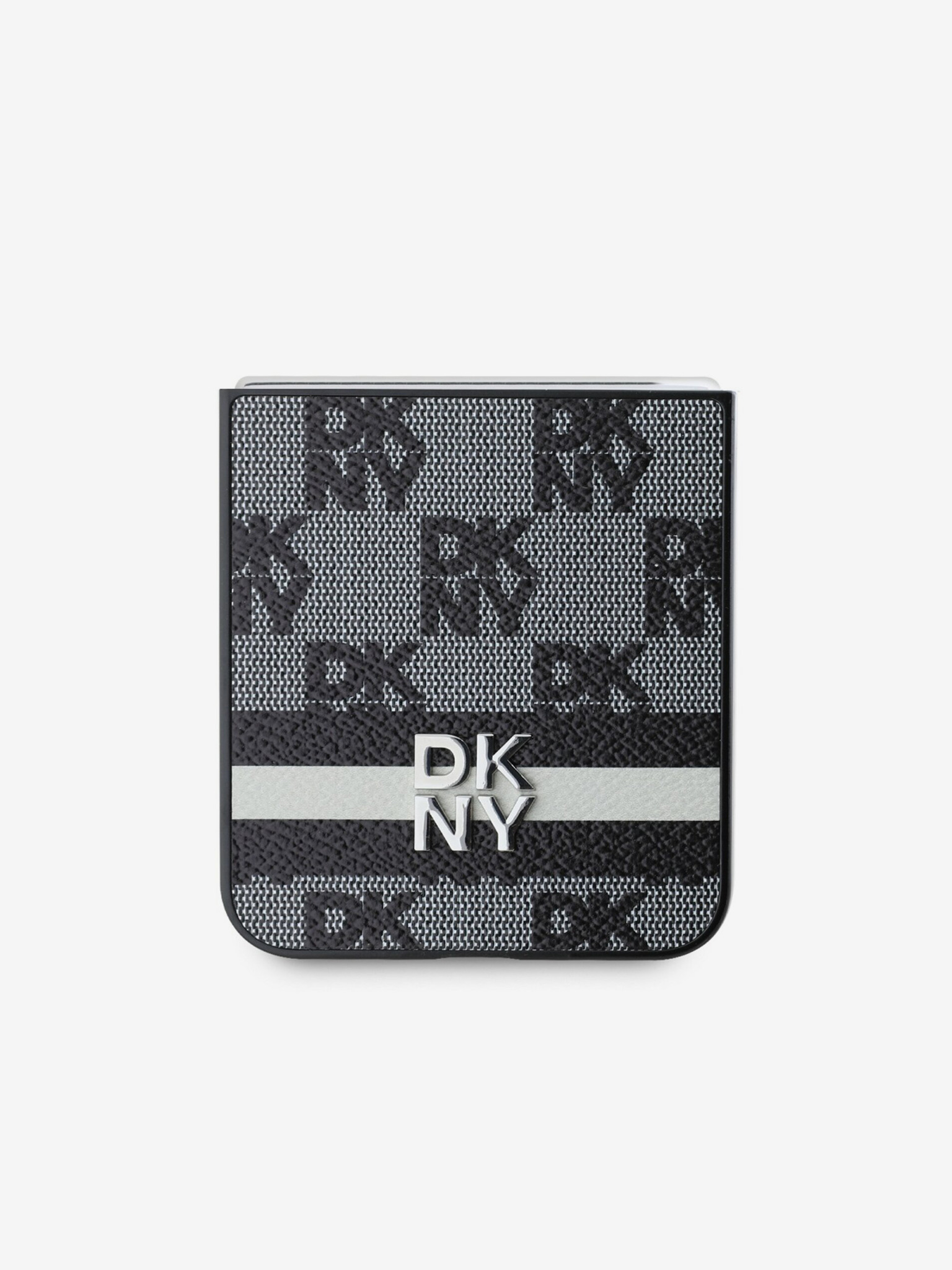 DKNY PC/TPU ismétlődő mintás, tónusos csíkos Magsafe hátlap iPhone 16 Pro-hoz Fekete