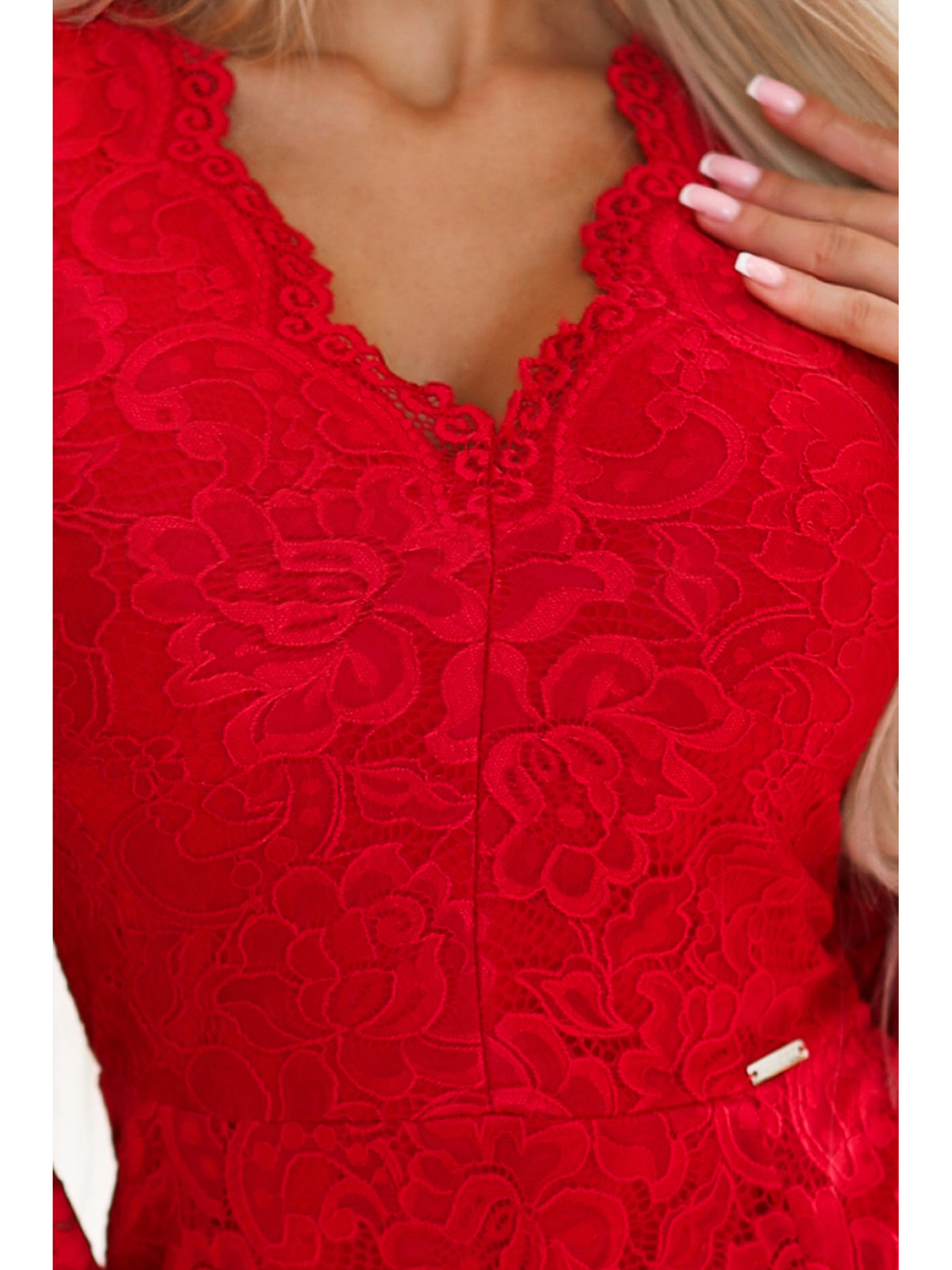 Klasszikus ruha kivágott háttal - piros csillámokkal Numoco ELEONORA ELEONORA
