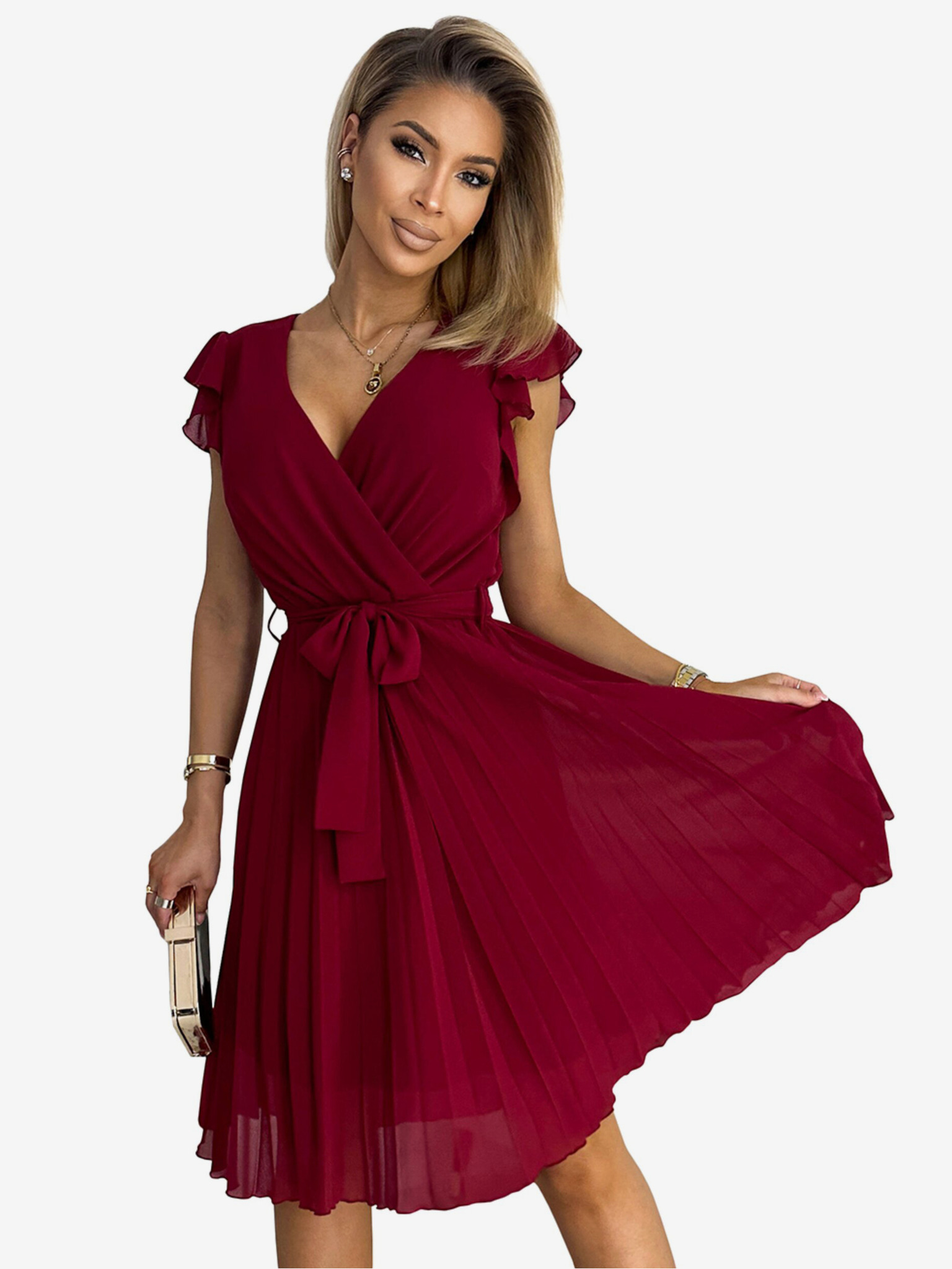 Széles övvel ellátott ruha - bordó Numoco