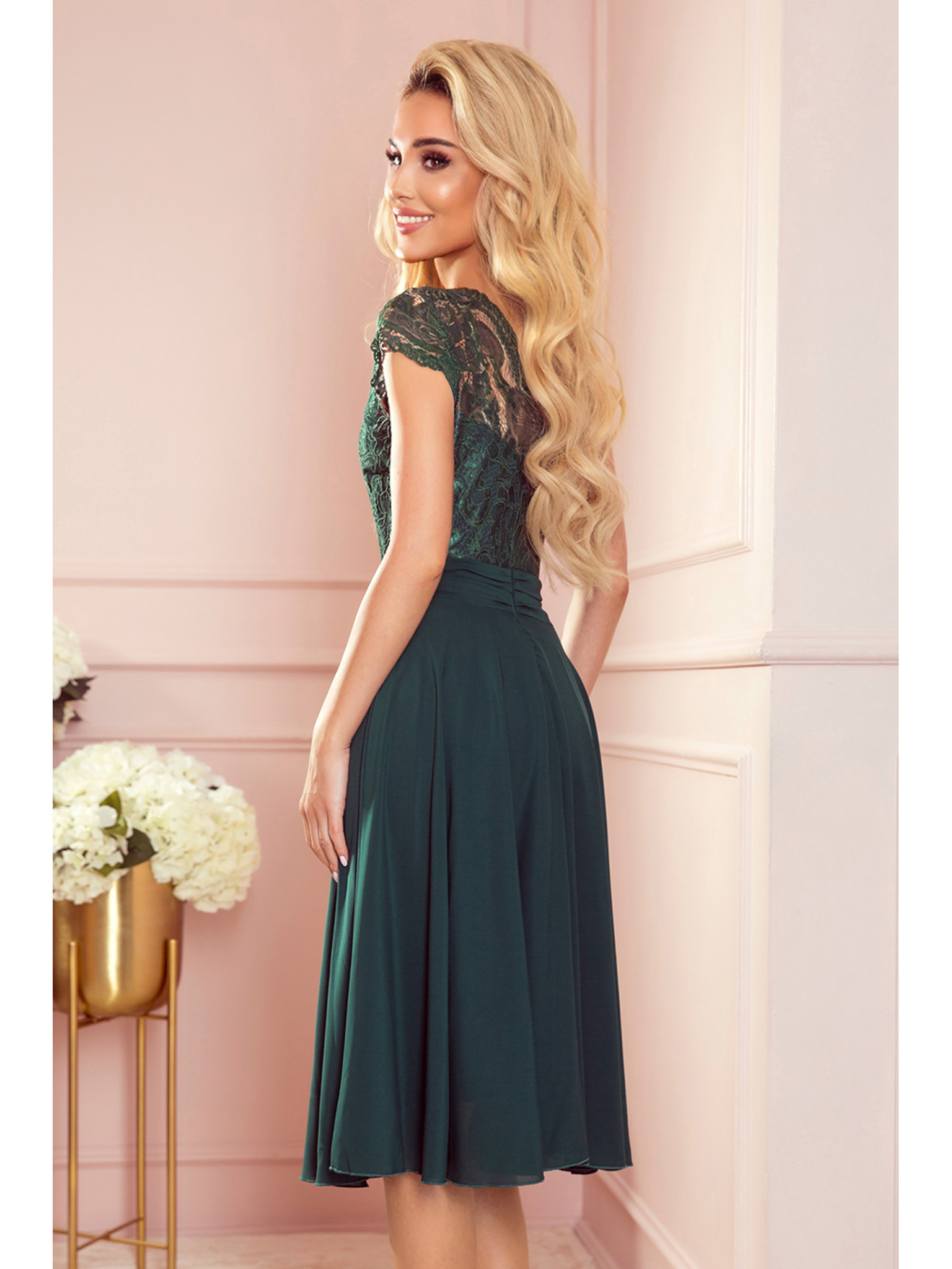 Sifon ruha csipkés nyakkivágással - zöld Numoco LINDA