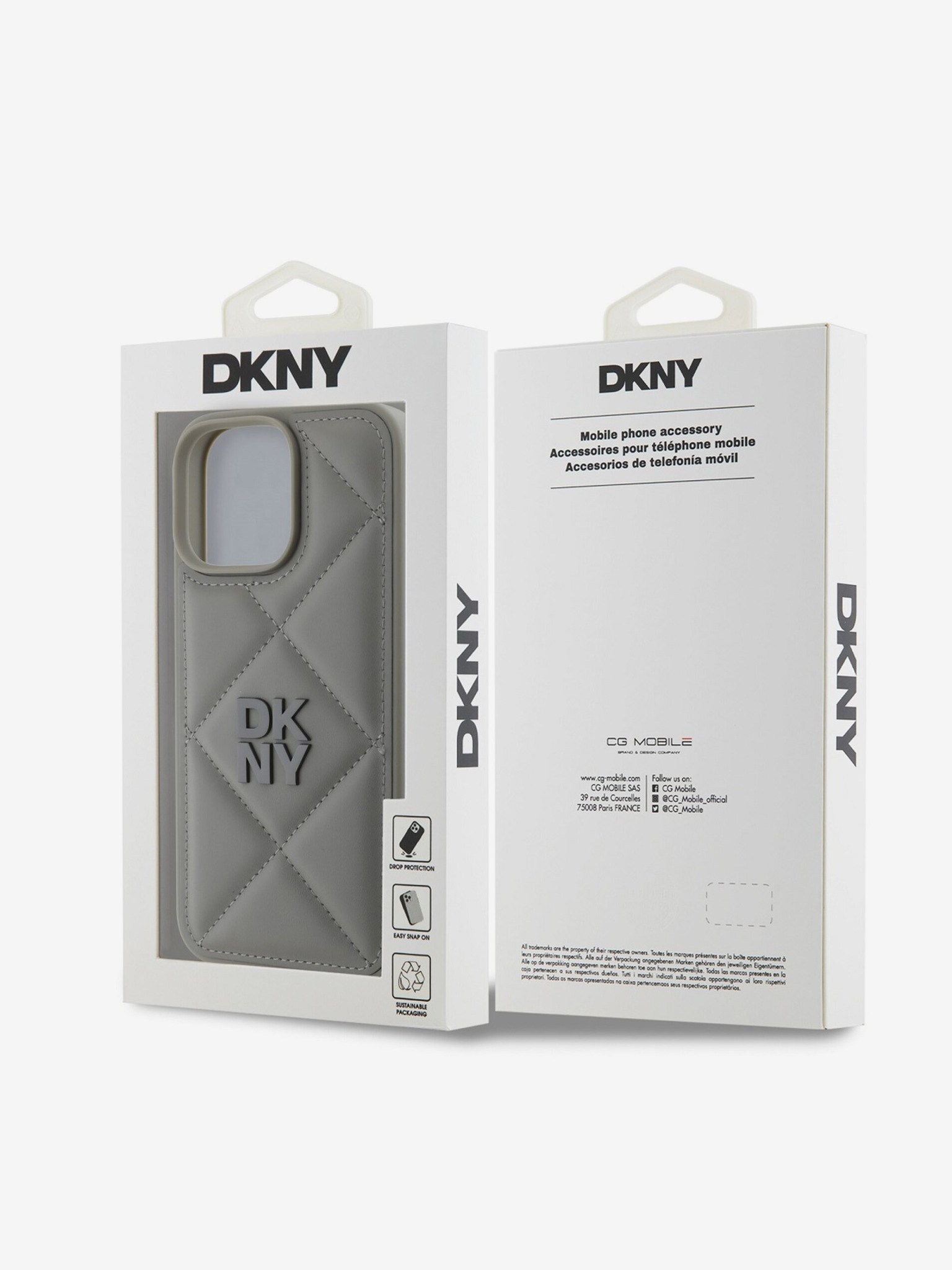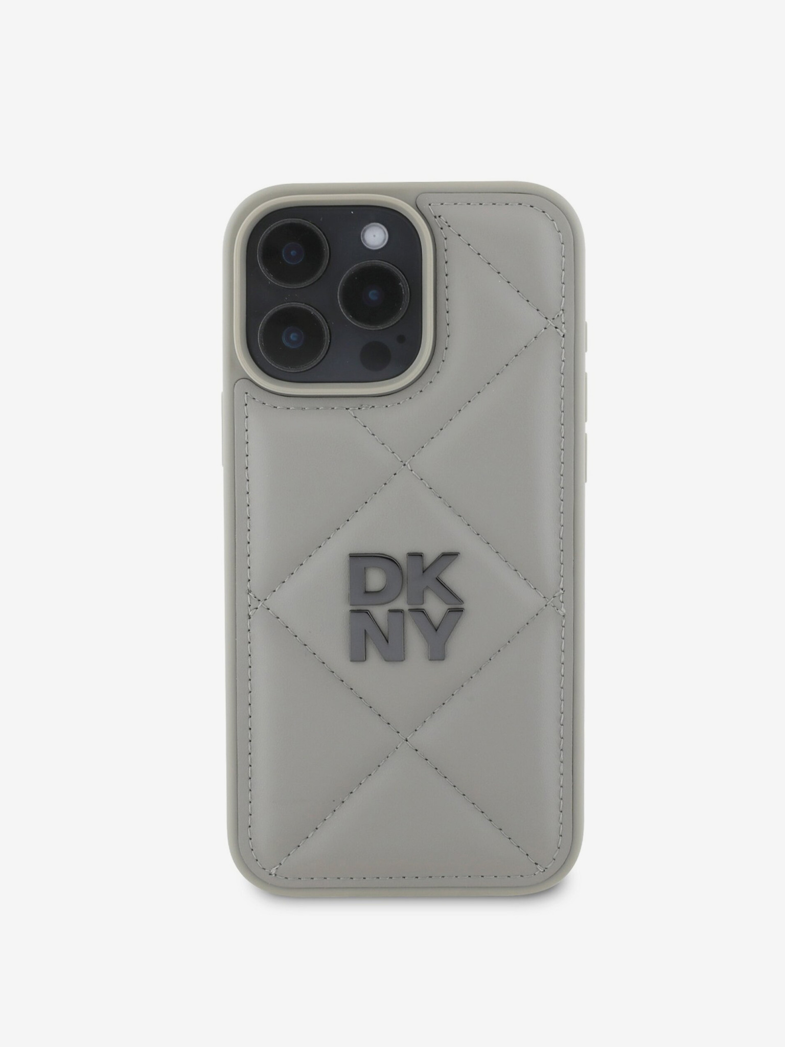 DKNY PU-bőr steppelt veretes logós hátlap iPhone 16 Plus készülékhez Szürke