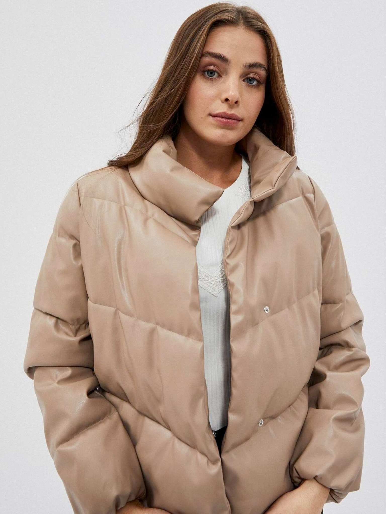 Bézs színű női steppelt kabát Moodo