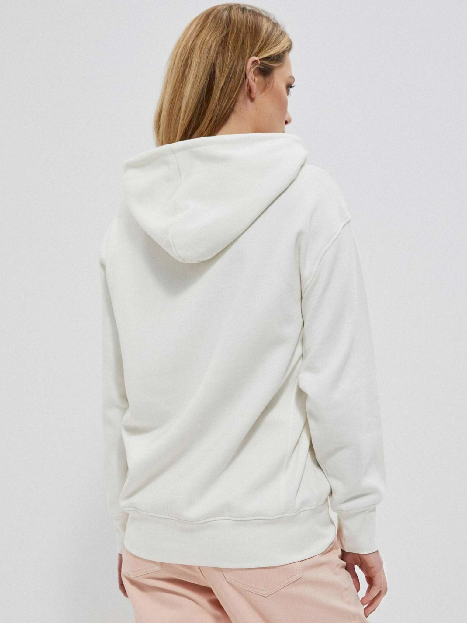Krémszínű női kapucnis pulóver Moodo