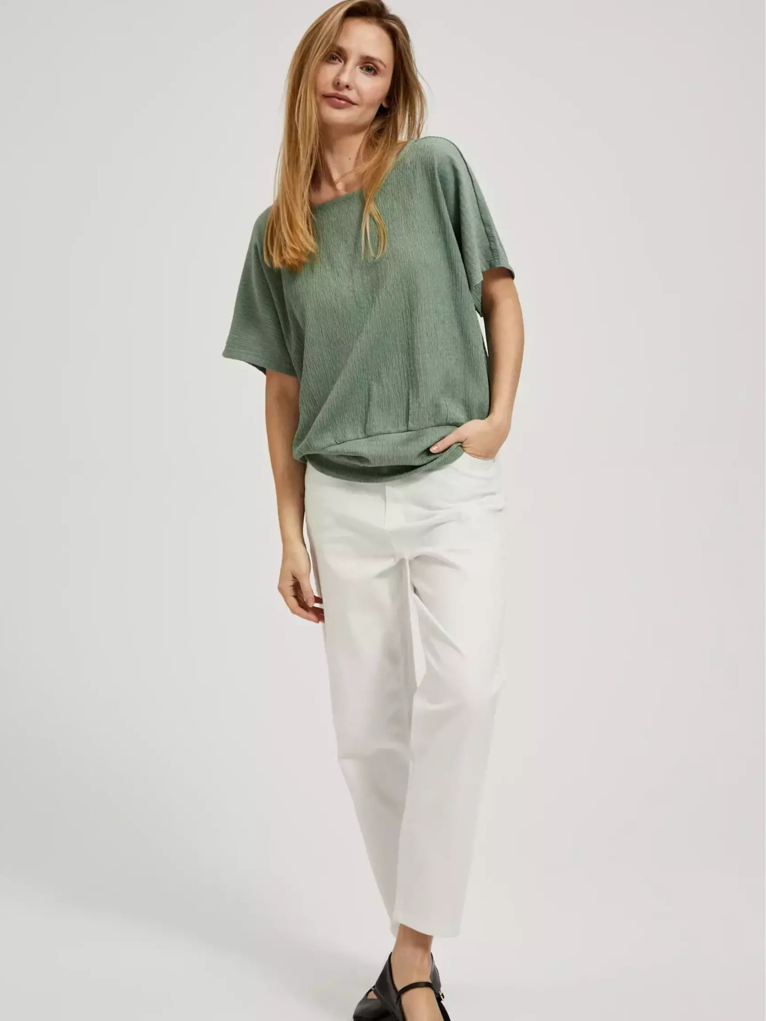 Moodo női felső zsebbel - olívazöld