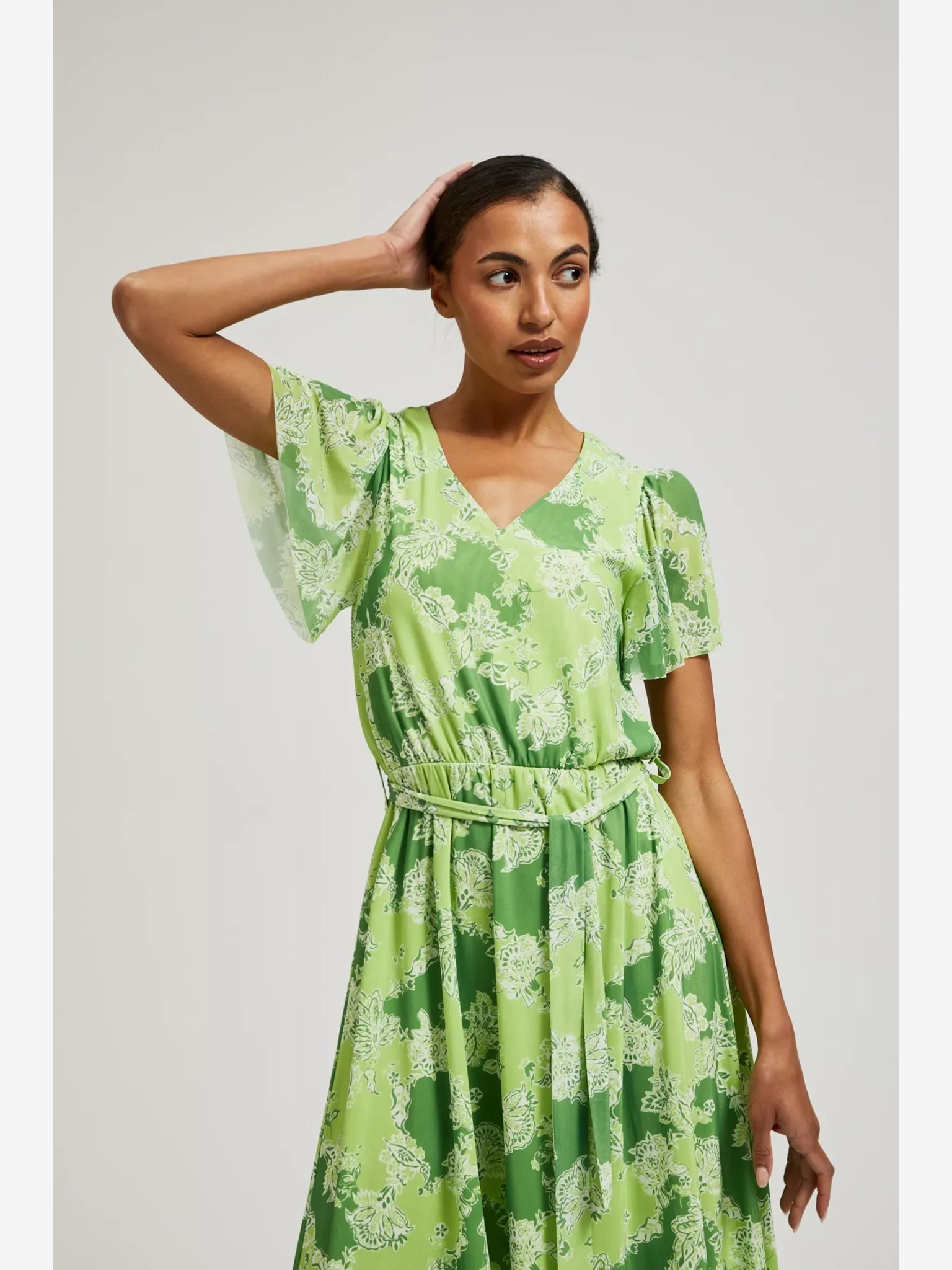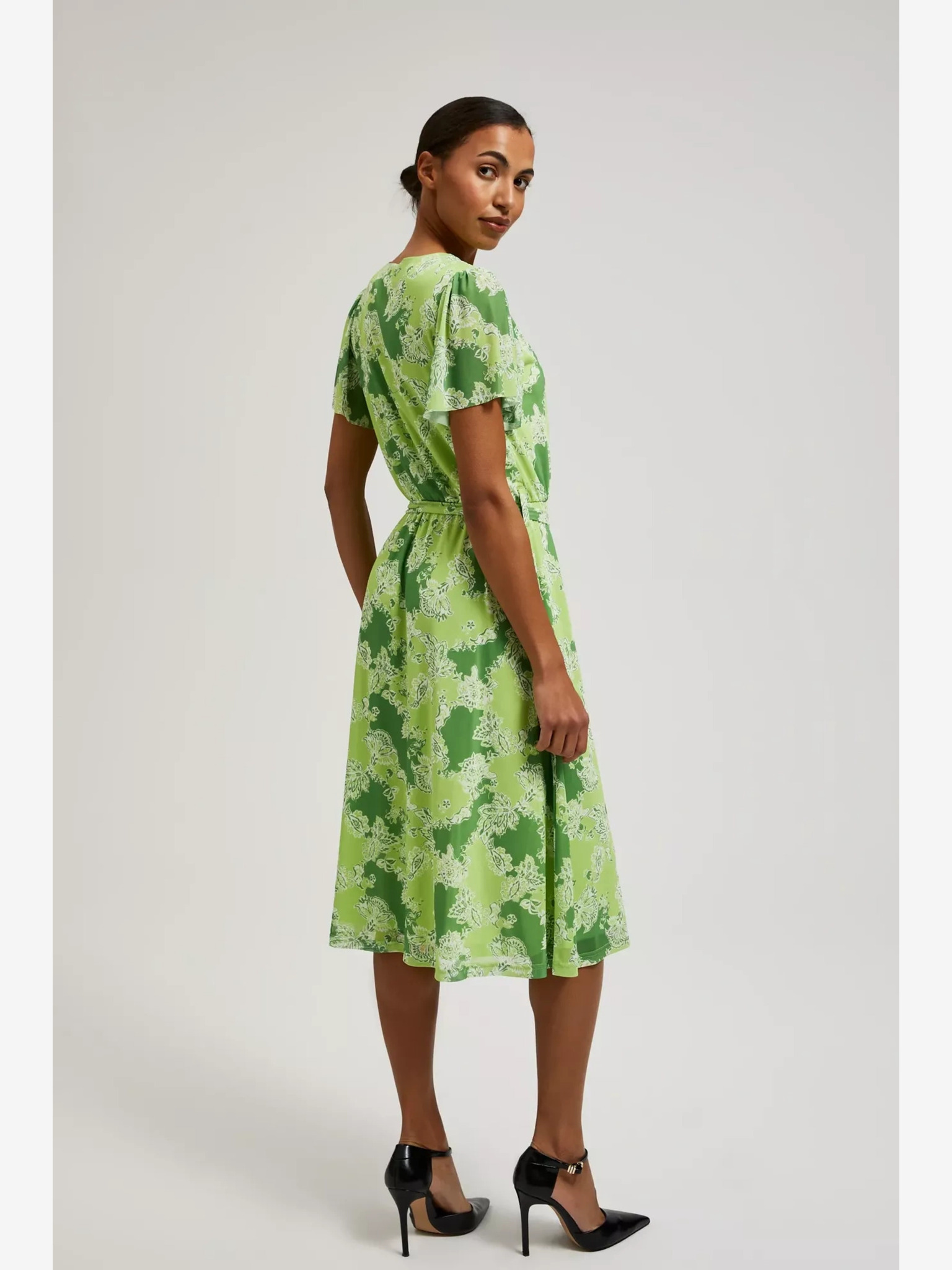 Zöld, fodros viszkózruha Moodo