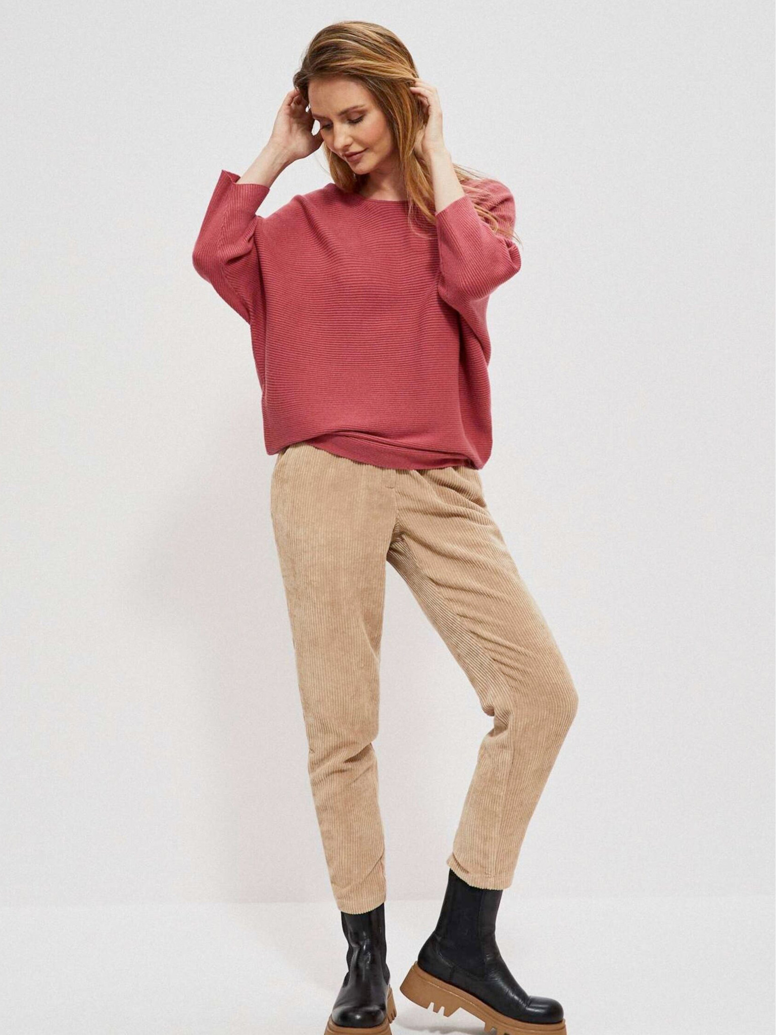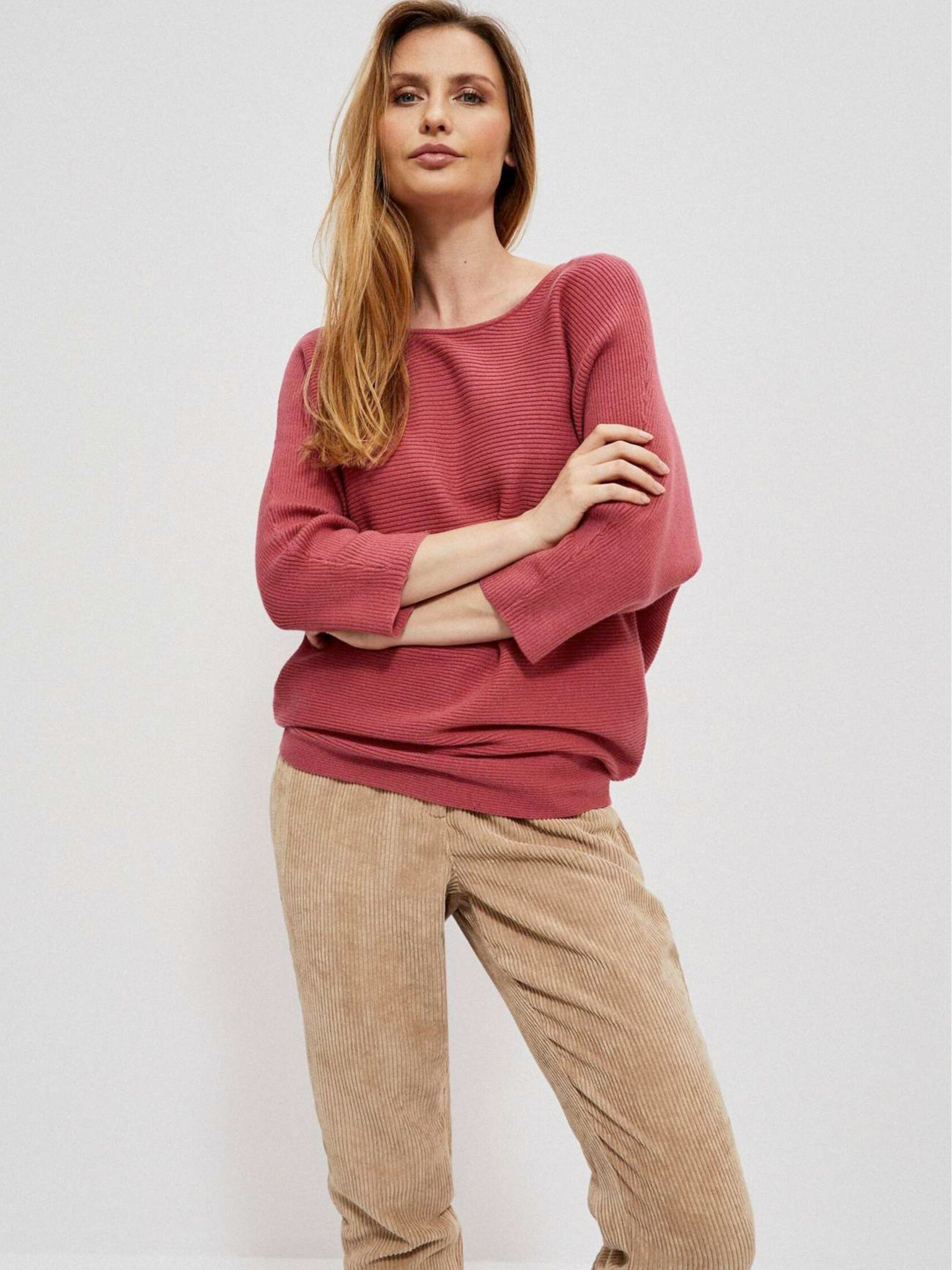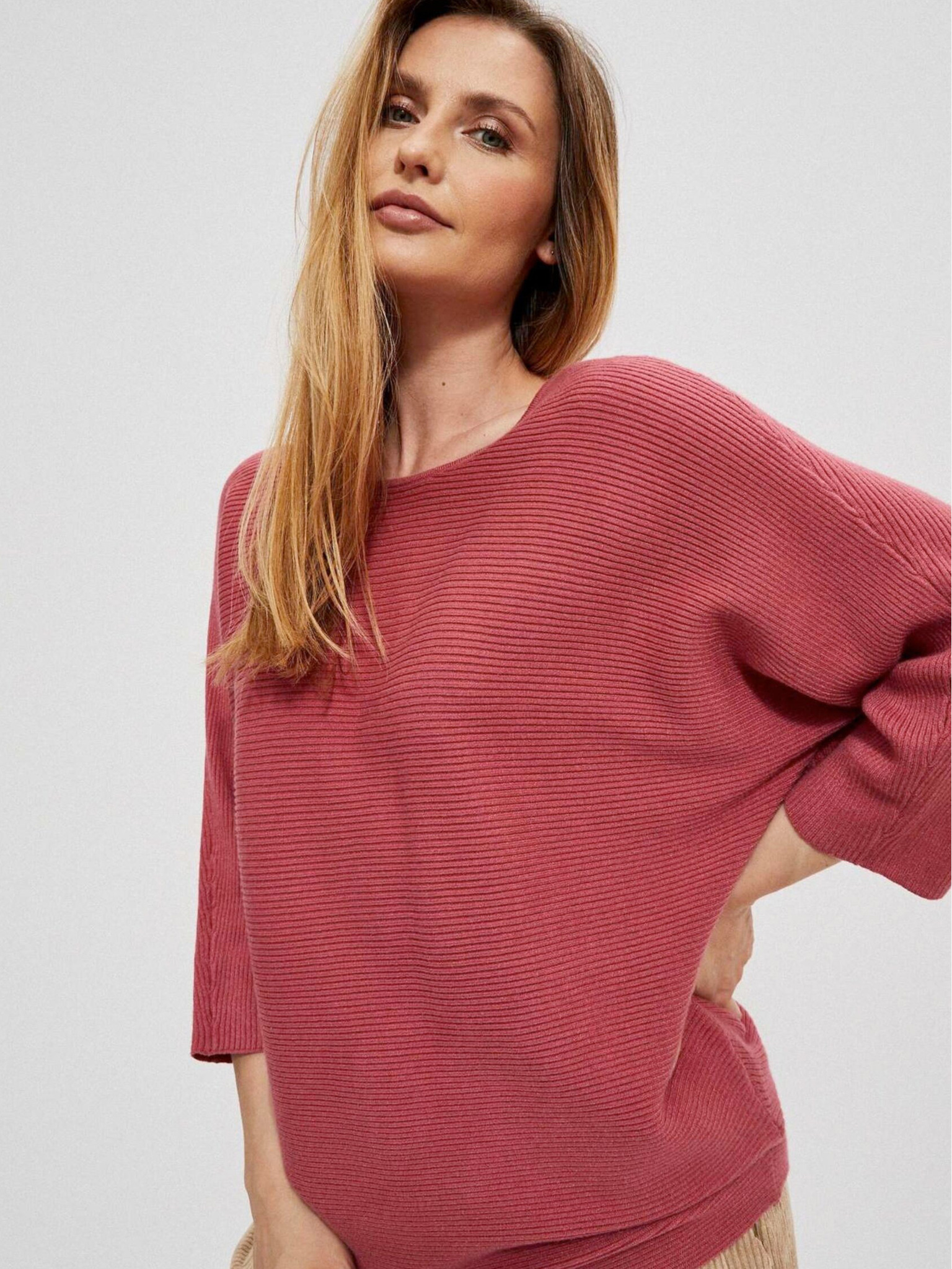 Rózsaszín, laza szabású pulóver Moodo
