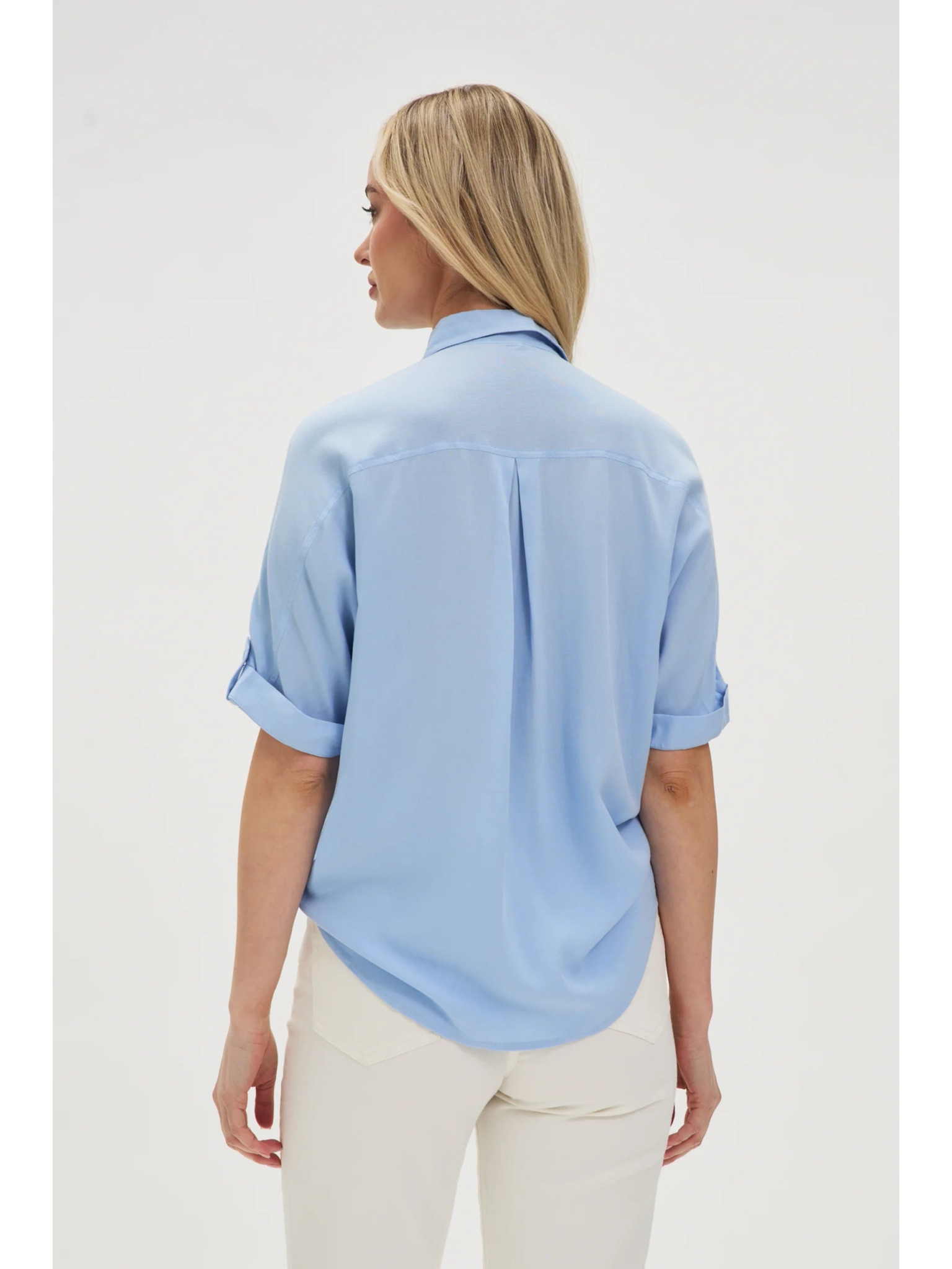 Fehér felhajtott ujjú blúz Moodo