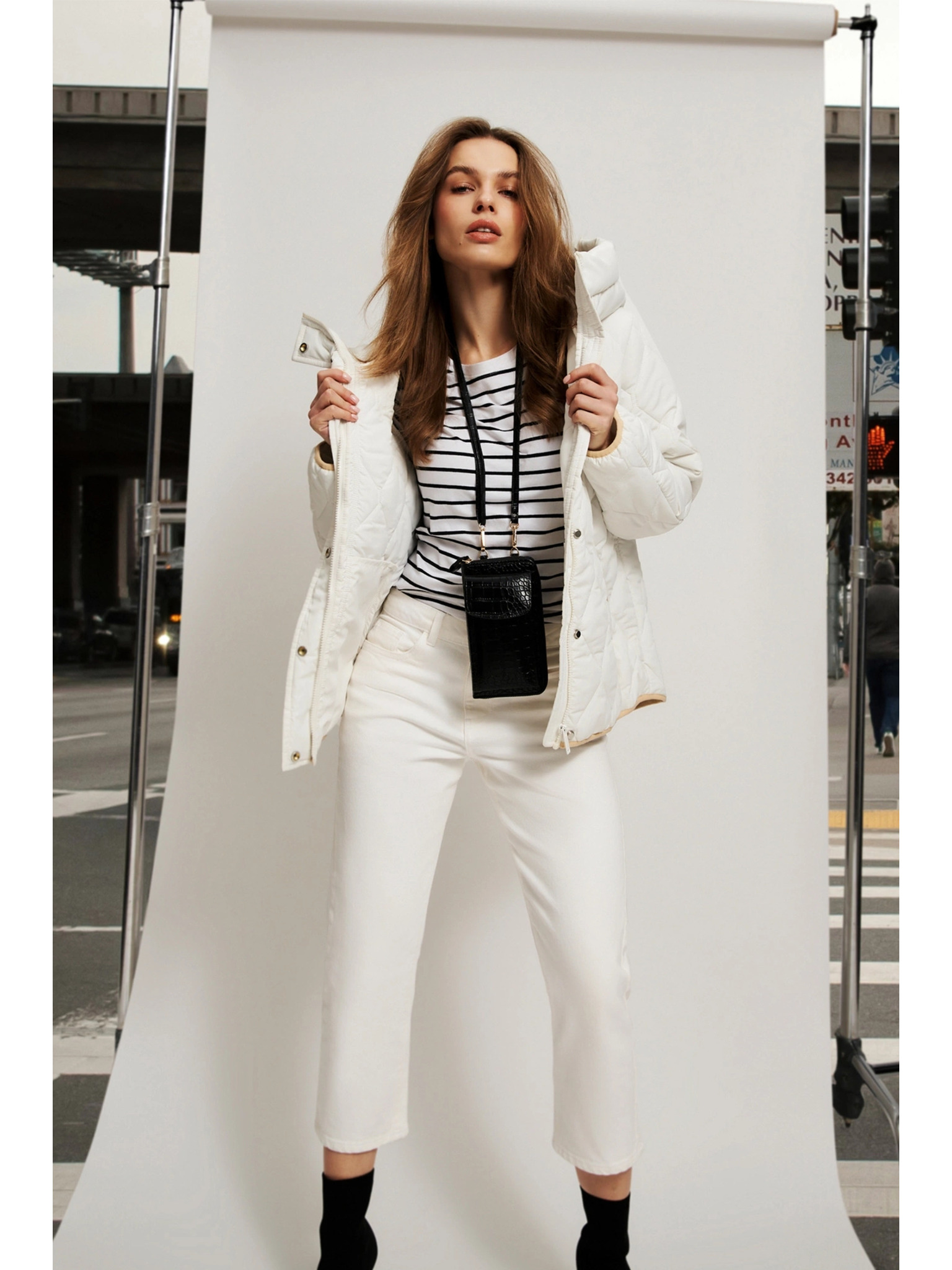 Krémszínű női tollkabát Geox Backsie