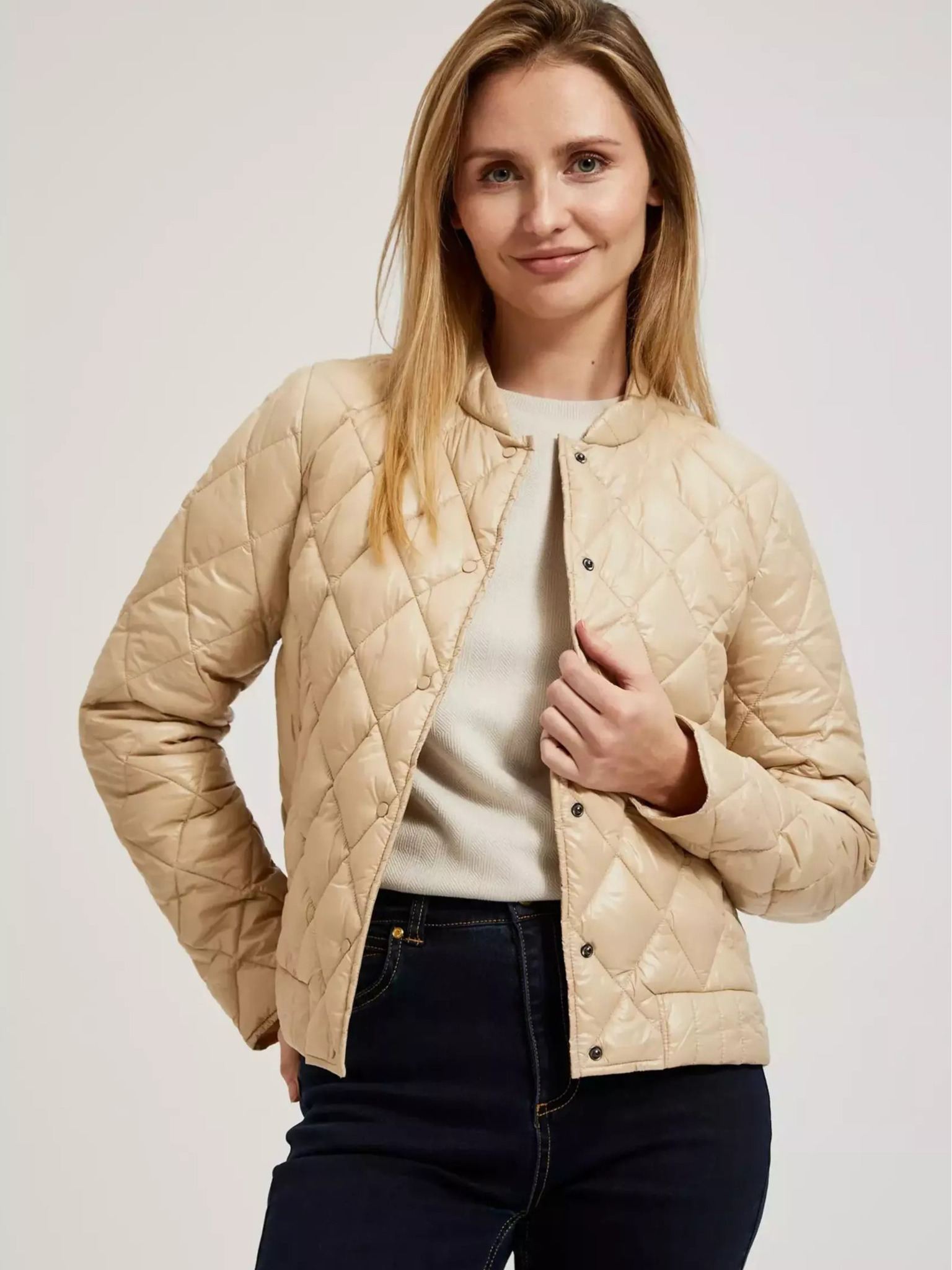 Krémszínű női steppelt kabát Moodo