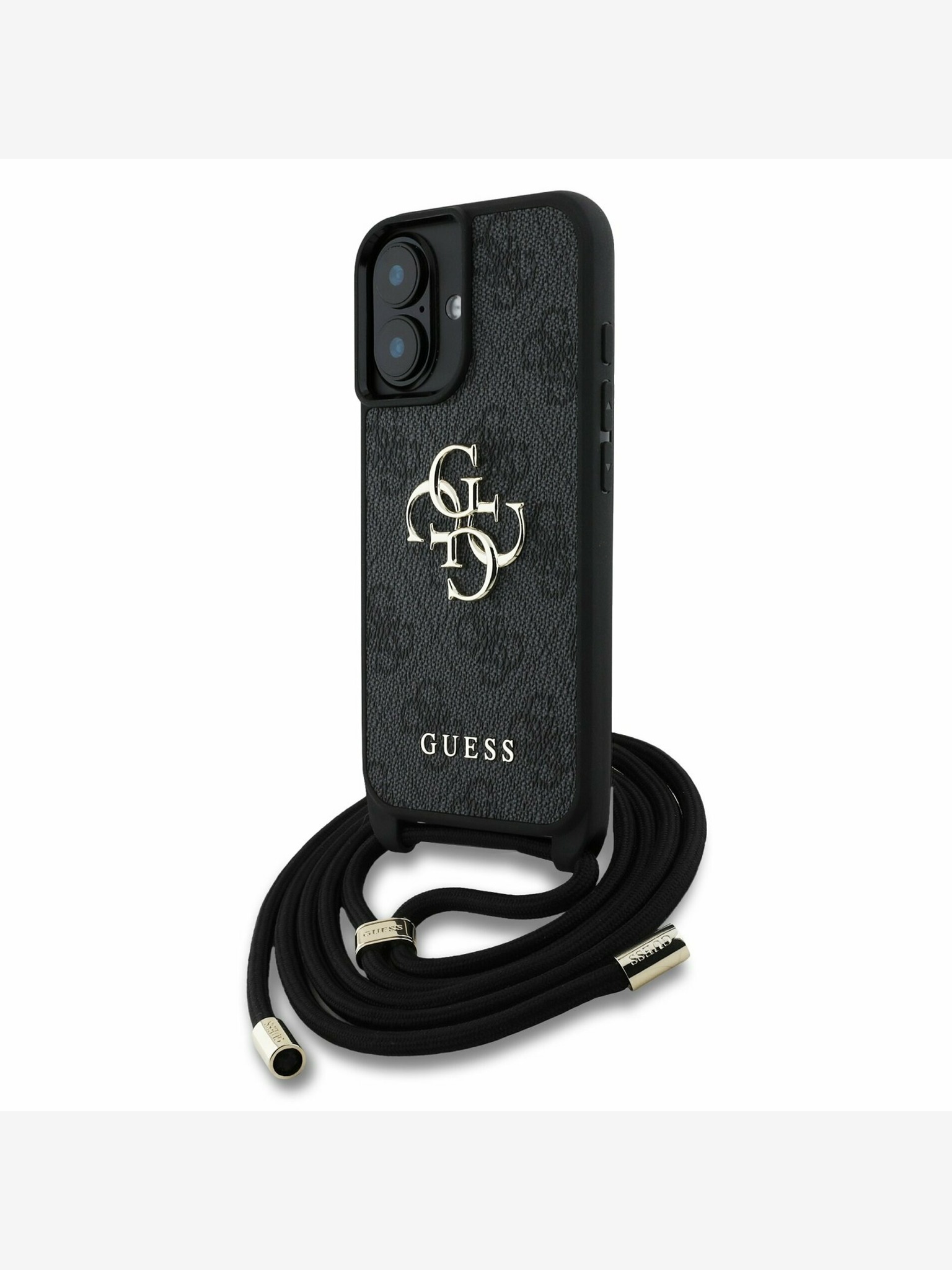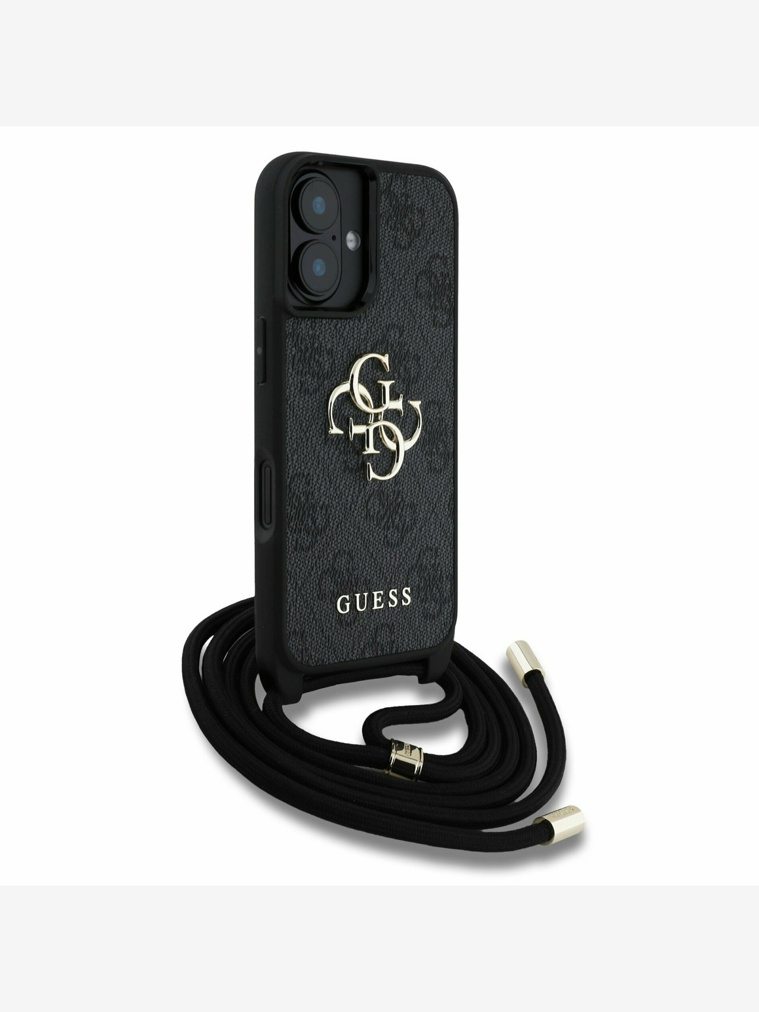Guess PU Bőr 4G Színes Gyűrűs Pánttal MagSafe Hátlap iPhone 16-hoz Fekete