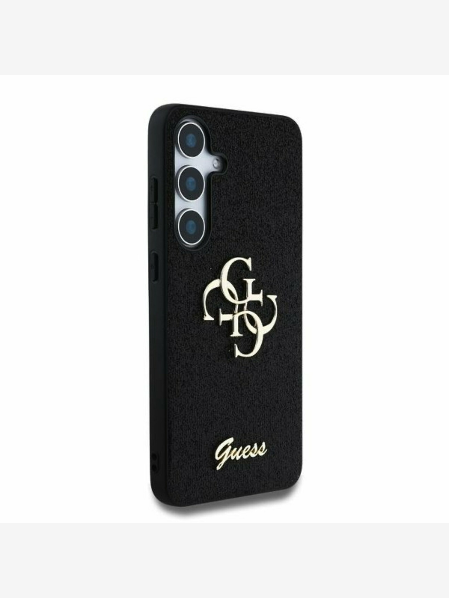 Guess PU fix csillámos 4G fém logós hátlap a Samsung Galaxy S25 készülékhez Fekete