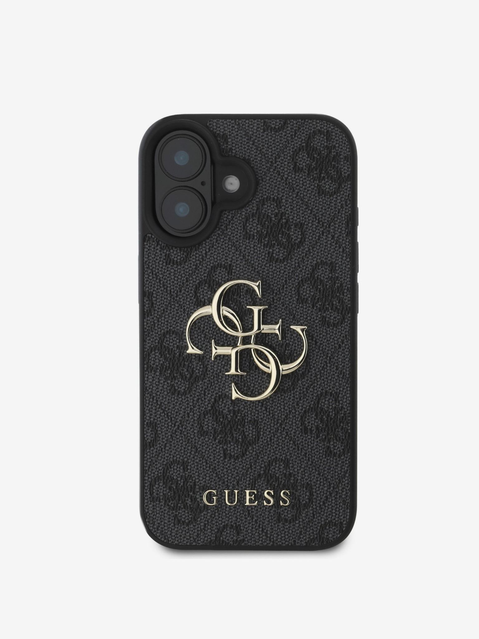 Guess PU 4G fém logó állvány kamera keret hátlap iPhone 16 Black